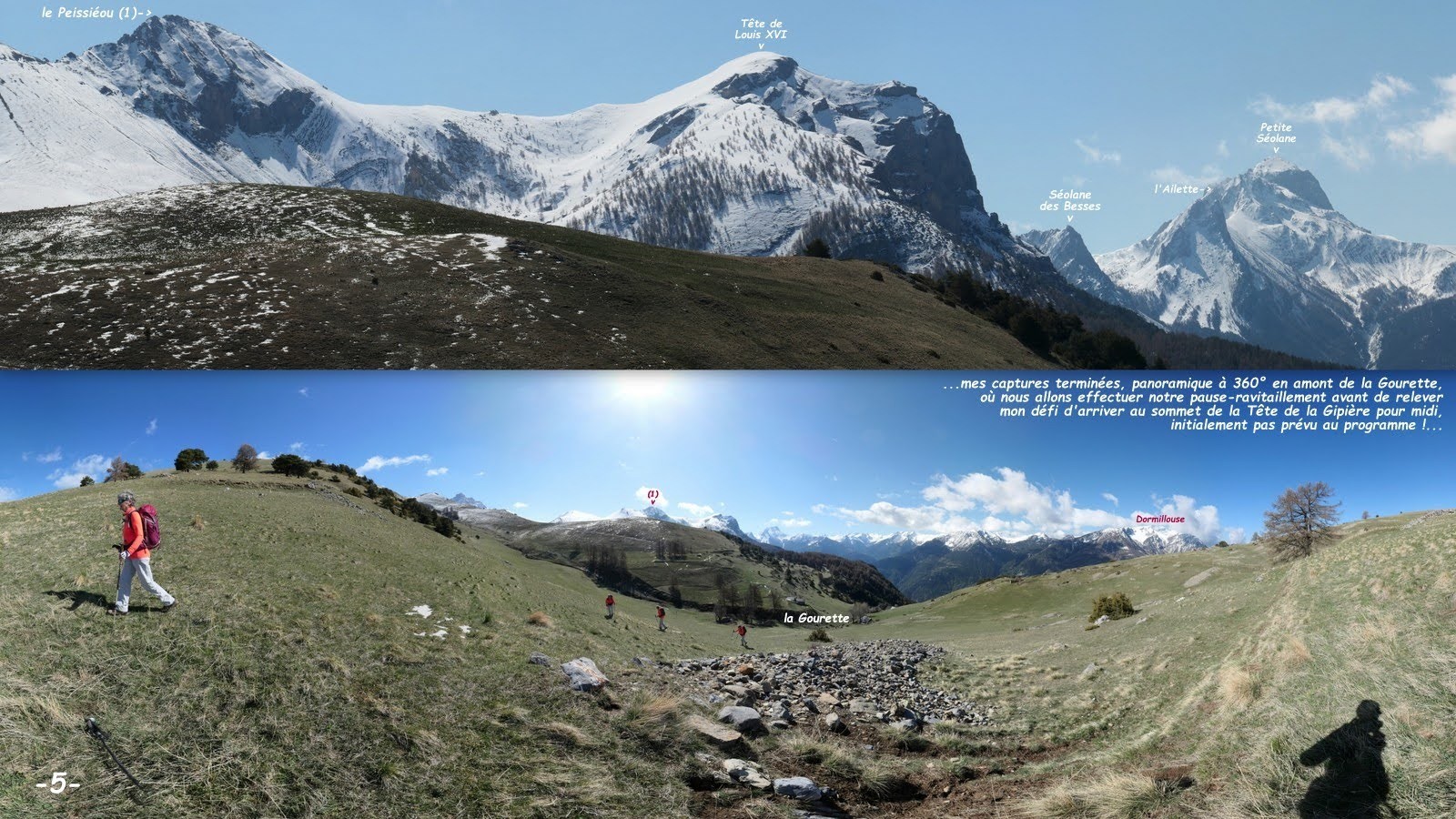 Ah ! la Tête de la Gipière, 2443m, sommet à l'époustouflant panorama à 360° d'accès des plus aisés pour le randonneur que le dénivelé ne rebute pas (croupe de type alpage sans aucune difficulté, exactement ce que je préfère !). Elle n'était pas pour autant au programme du jour, essentiellement constitué de la volonté de trouver de bons sentiers sur terrain s'égouttant rapidement après les dernières intempéries et de capturer d'intéressantes images de vieux murs en pierres sèches; la chose faite à notre pause-ravitaillement en amont de la Gourette, il m'a suffi de relever le défi lancé par l'Ours :