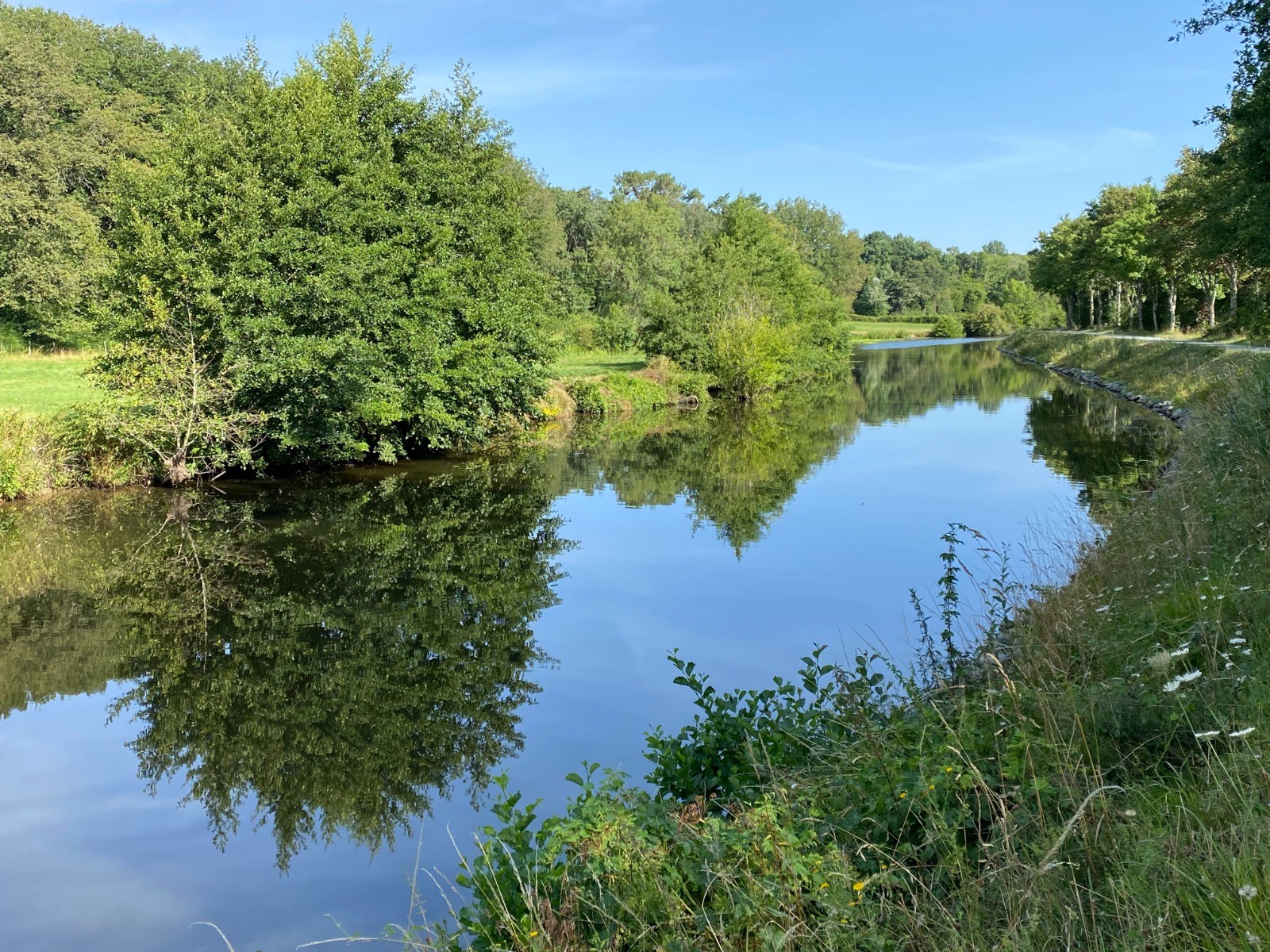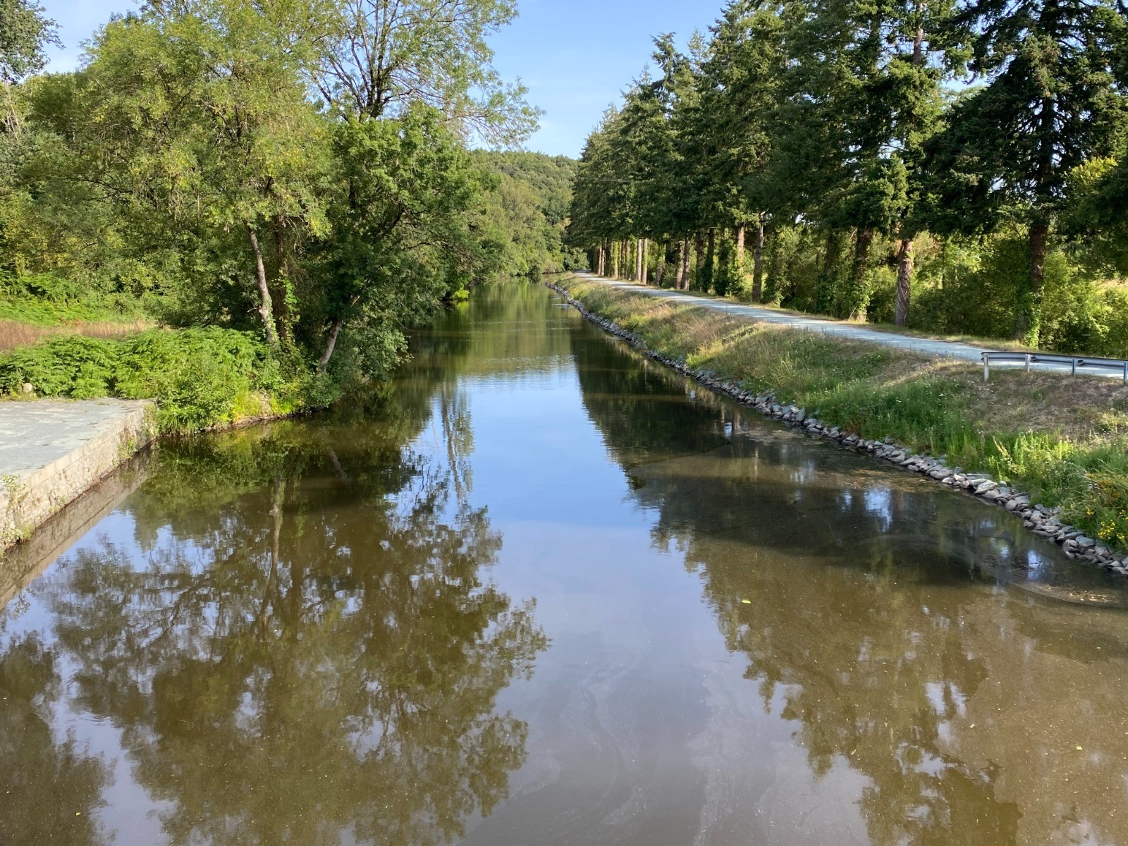Au bout de 1.5 km nous voilà au bord du canal de Nantes à Brest.