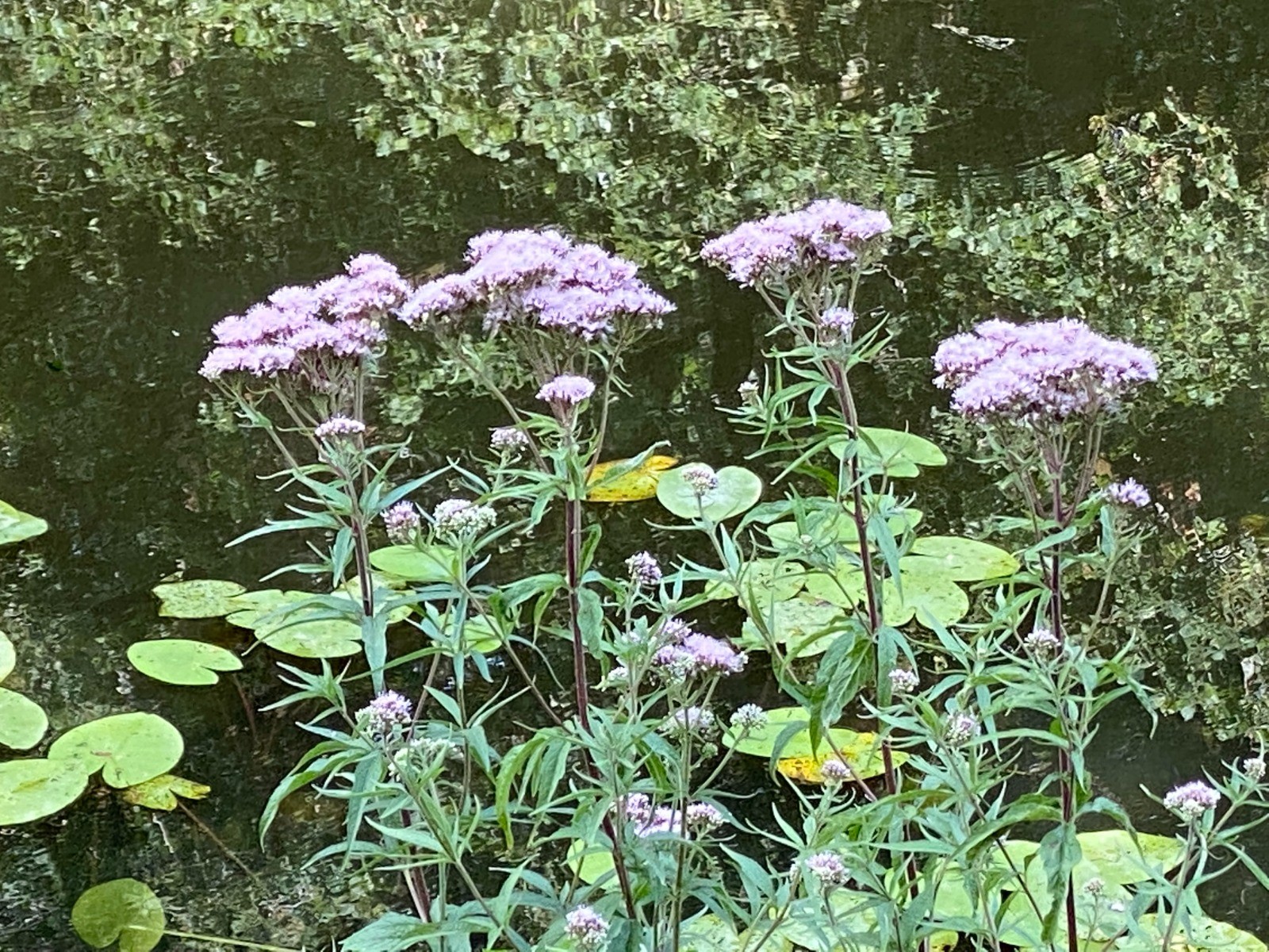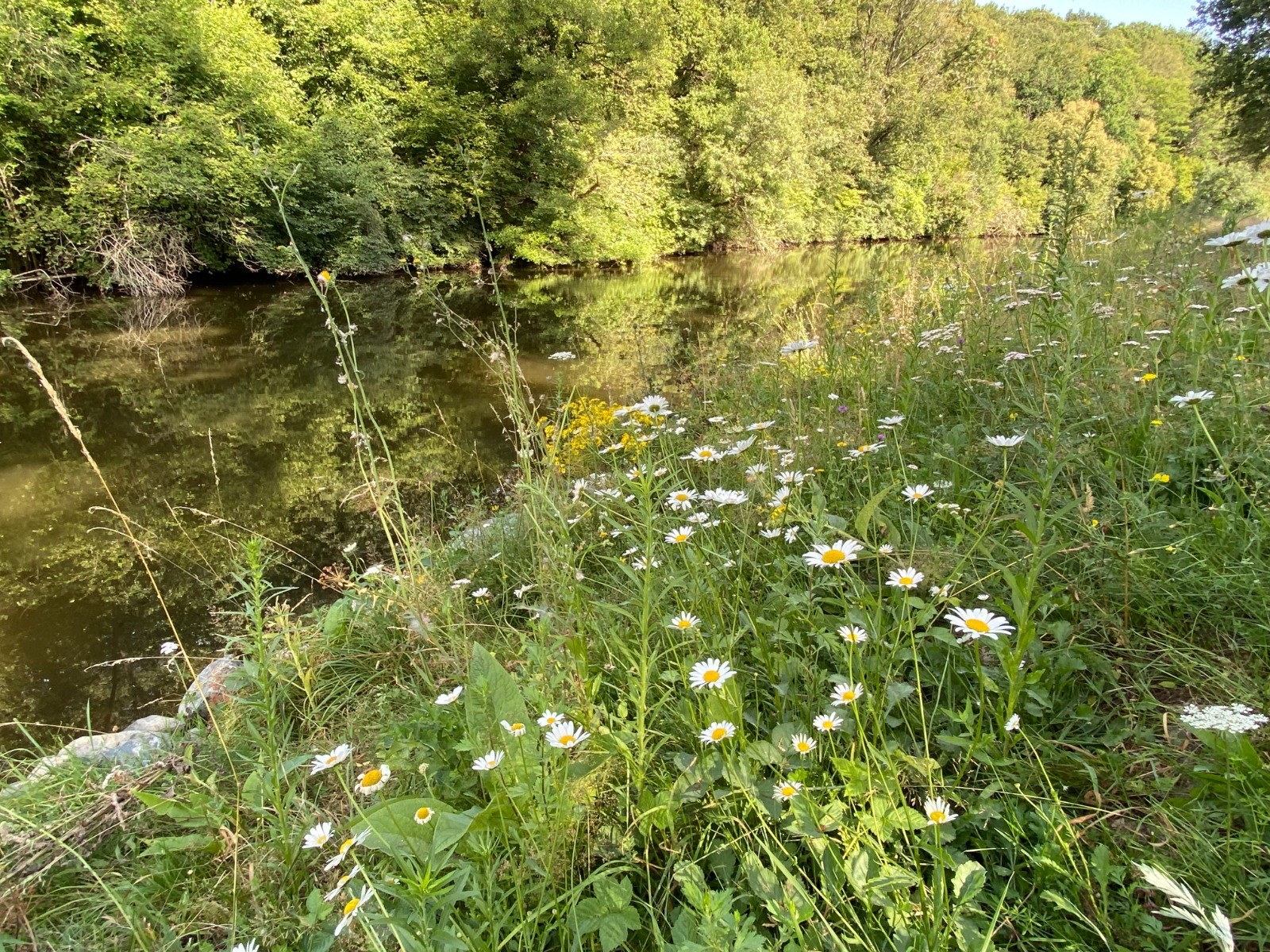 Voici une liste non exhaustive : marguerites, cardères, salicaires, jussie invasive ( photo no 6 ) , menthe, achillée, mauve musquée ( photo no 4 ) compagnon blanc, vesce des crapauds, pulicaire, eupatoire chanvrine ( photo no 14 ) ...