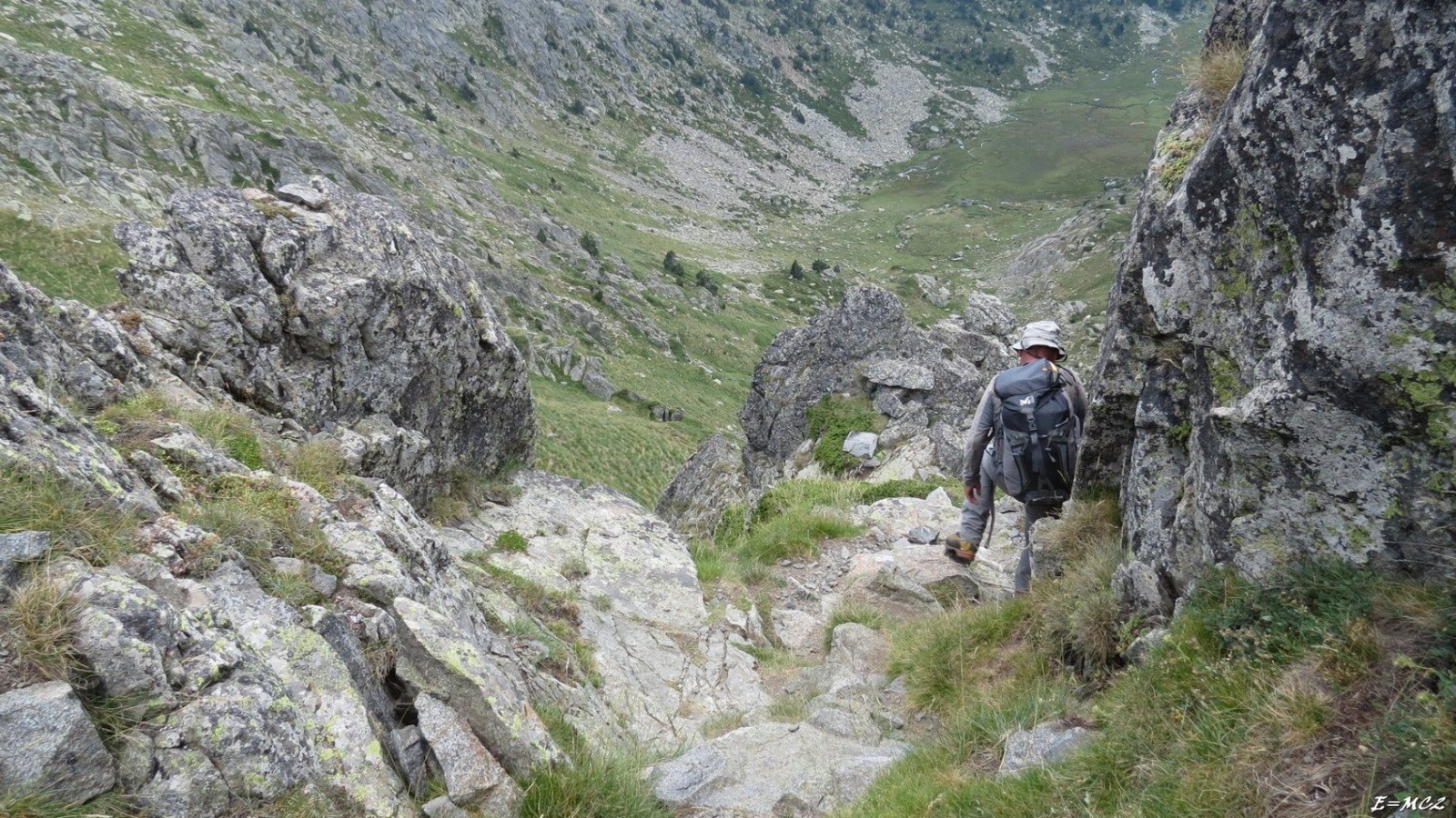 Du Madres suivre la crête vers l'est jusqu'au Roc Nègre. Entre les deux sommets il y a un petit passage en descendante nécessitant l'aide des mains, pas de I.