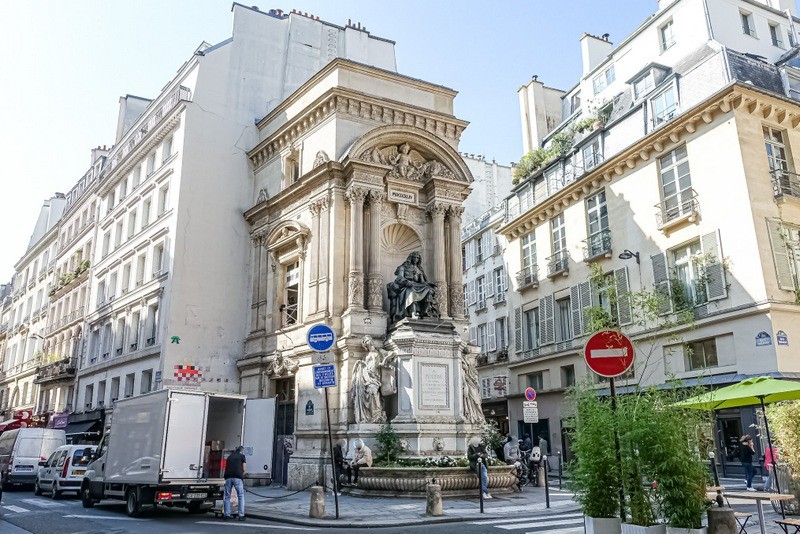 Entre le Quartier Latin et le Marais, un parcours du topoguide du comité départementale d ela Randonnée Pedestre de Paris sur les Fontaines de Paris, toutes les histoires sur ces Fonatianes sont expliquées dans le topoguide.