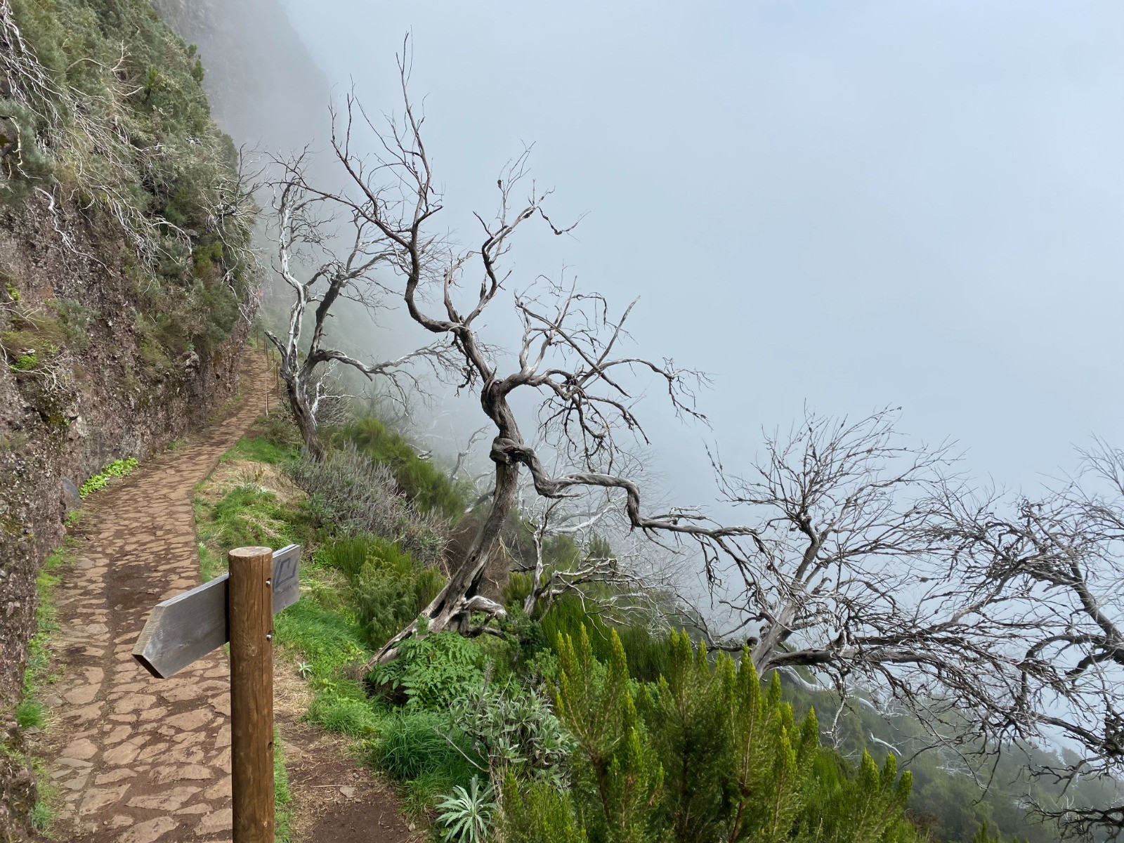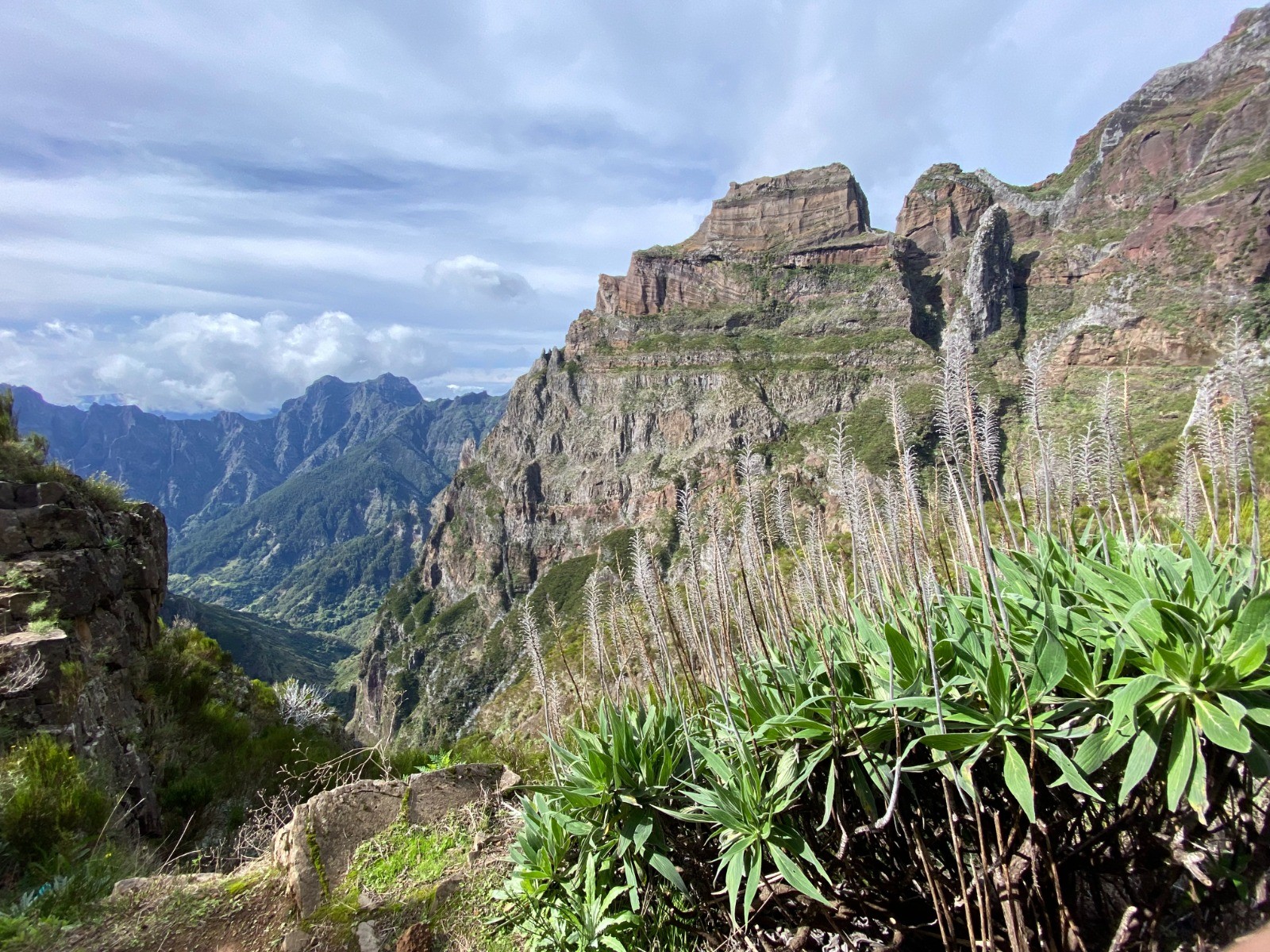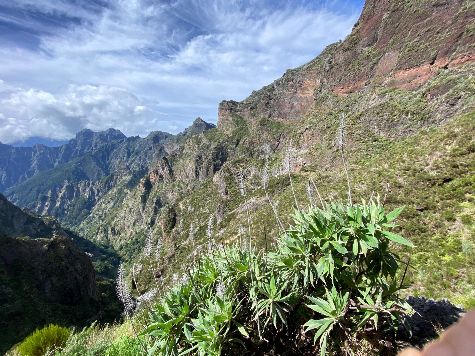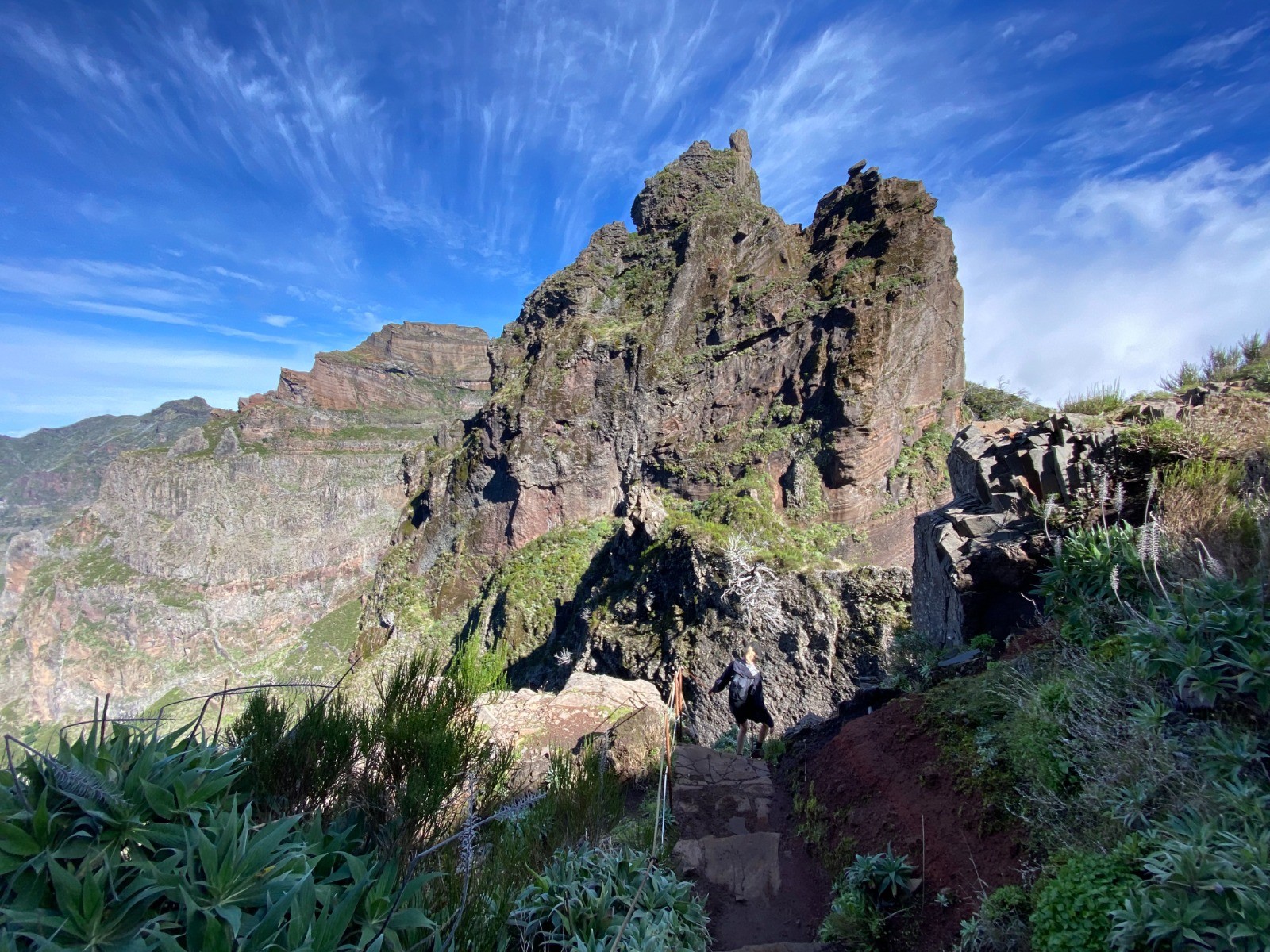 Dès le départ, on comprend rapidement que nous nous engageons dans une randonnée haute en sensations : situé sur une crête, le chemin surplombe des falaises escarpées.