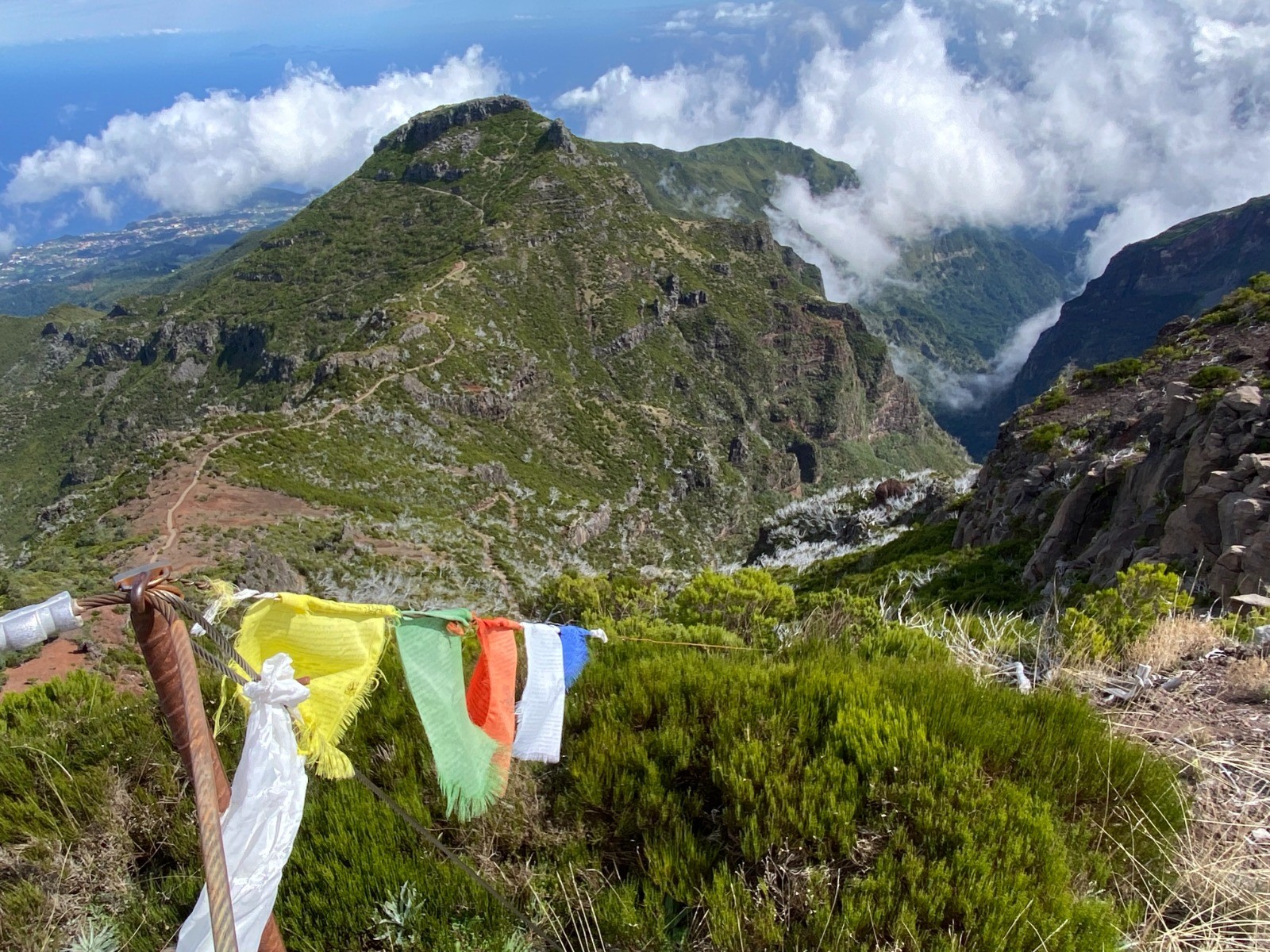 En haut de la montagne, le vide de chaque côté de nos pieds, quelque part entre les nuages et l'océan...