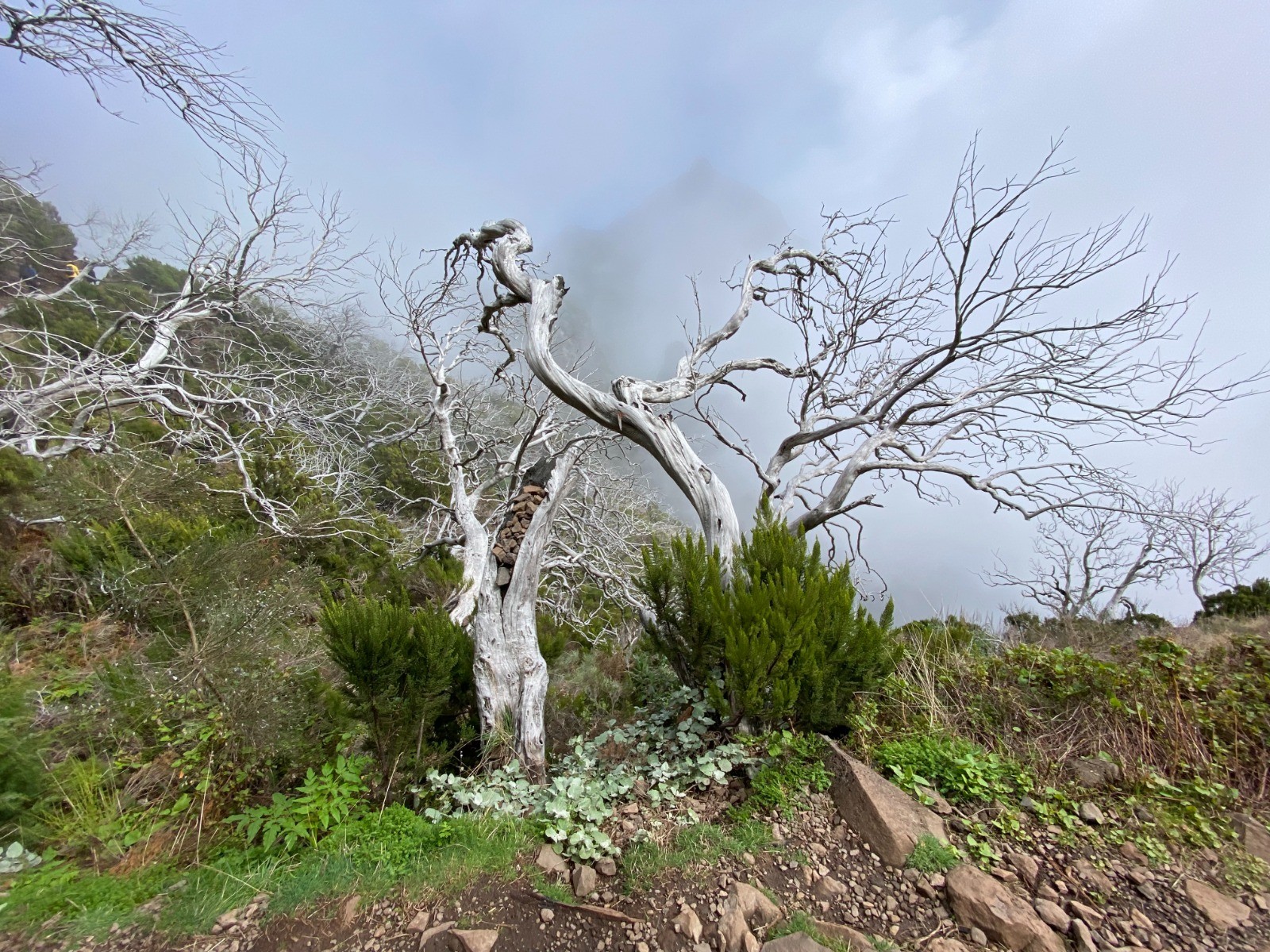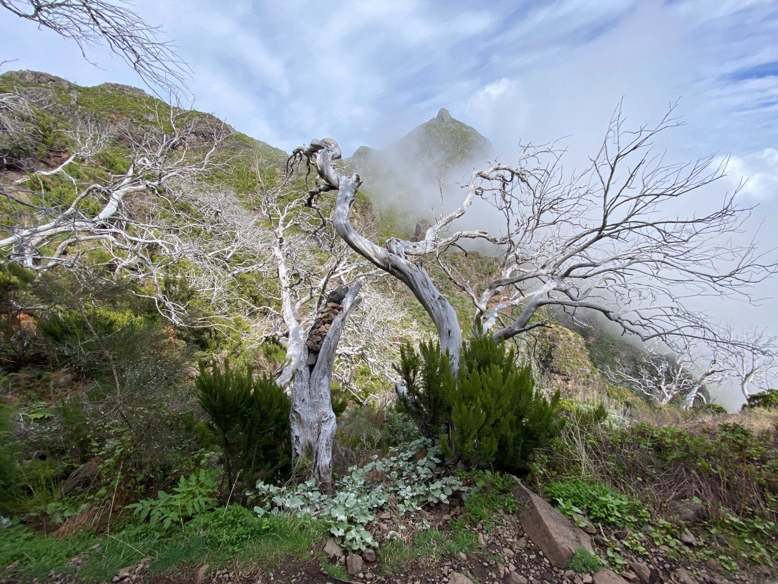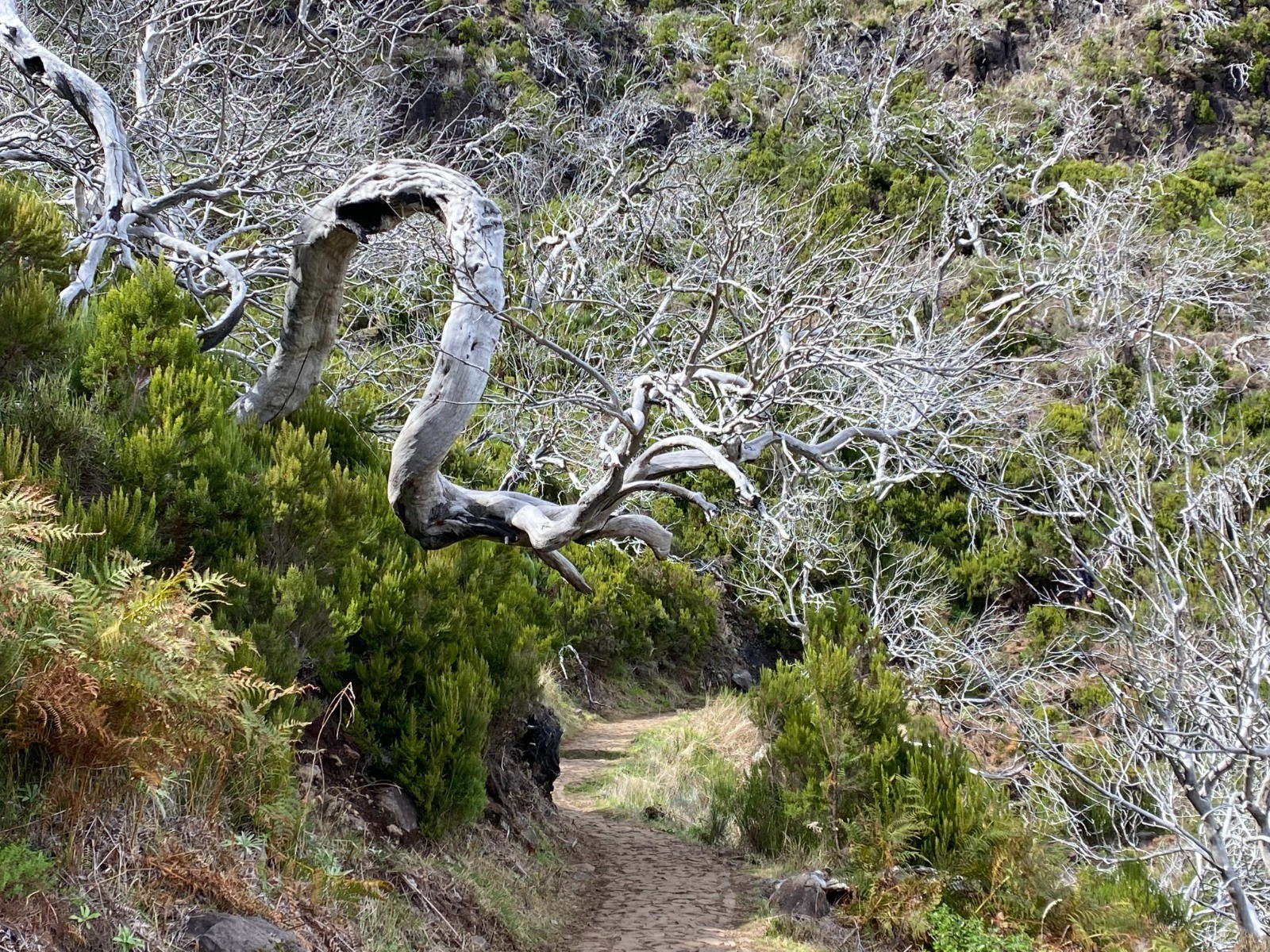 Nous traversons une forêt de bruyères arborescentes ( photos no 11, 15, 16 et 17 ) qui a subi un incendie, cela donne au décor un côté lunaire.