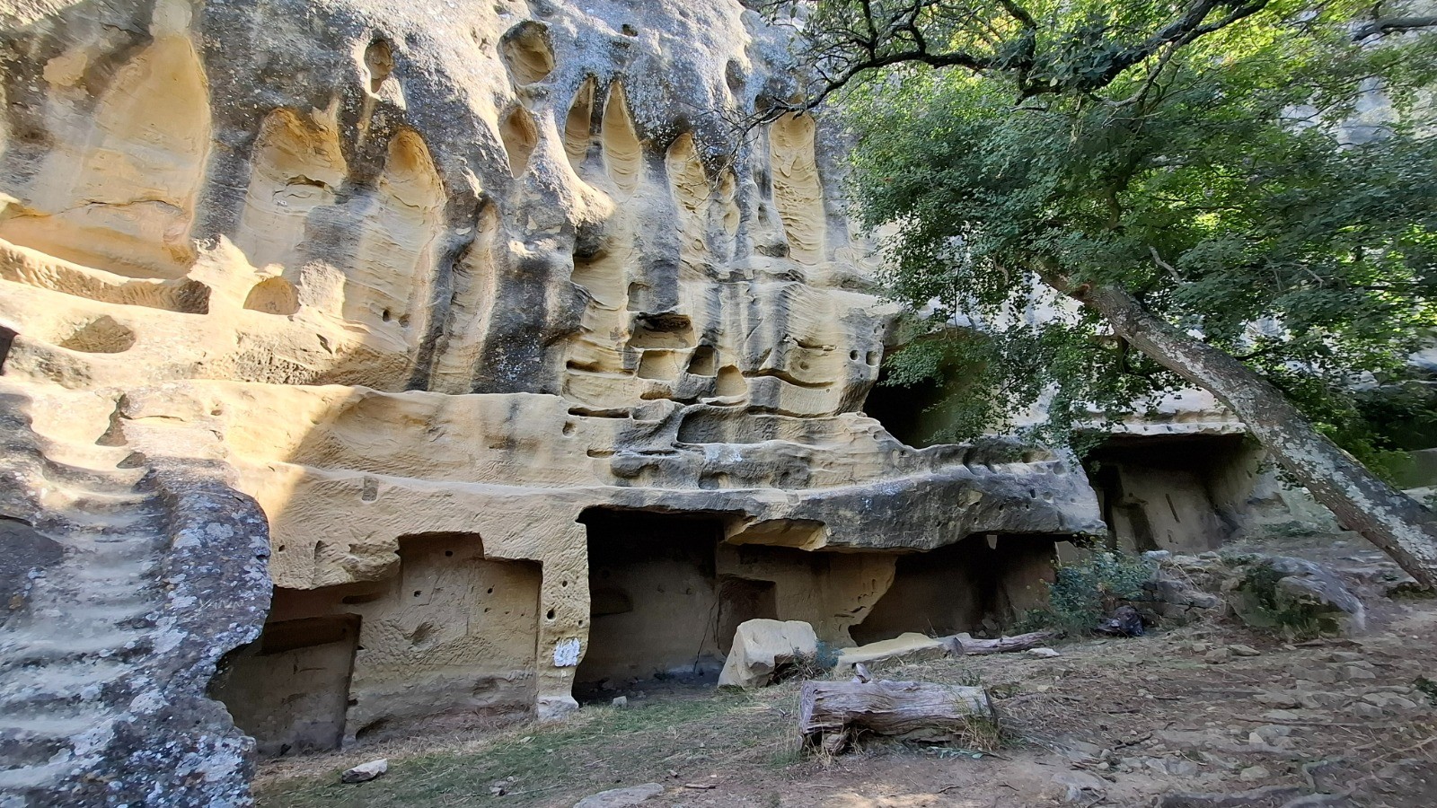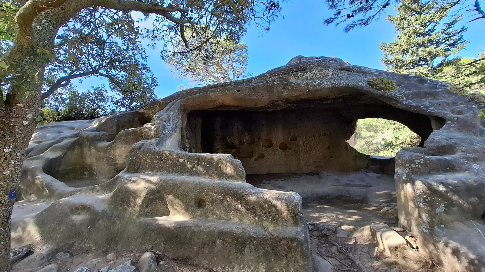 On commence par la visite du site troglodytique médiéval de Calès, une pure merveille. On ne se lasse pas de déambuler le long des parois de grès ou sont creusées toutes ces grottes. Il faut prendre son temps pour ne rien oublier. Des traces bleus, lignes et points, nous orientent dans ce dédale. Avant votre visite vous pouvez acheter à l'épicerie de Lamanon le petit fascicule de l'association Calès Saint-Denis. www.cales-lamanon.fr