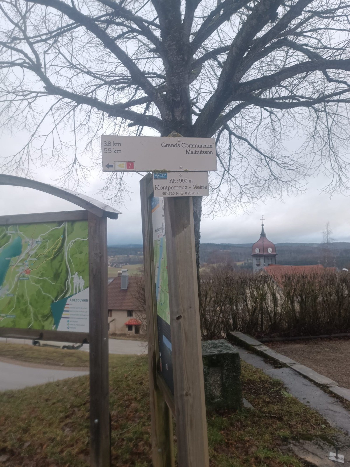 La balade fait une boucle au départ du village de Montperreux sur les hauteurs du lac de saint-point empruntant les pistes de ski de fond.