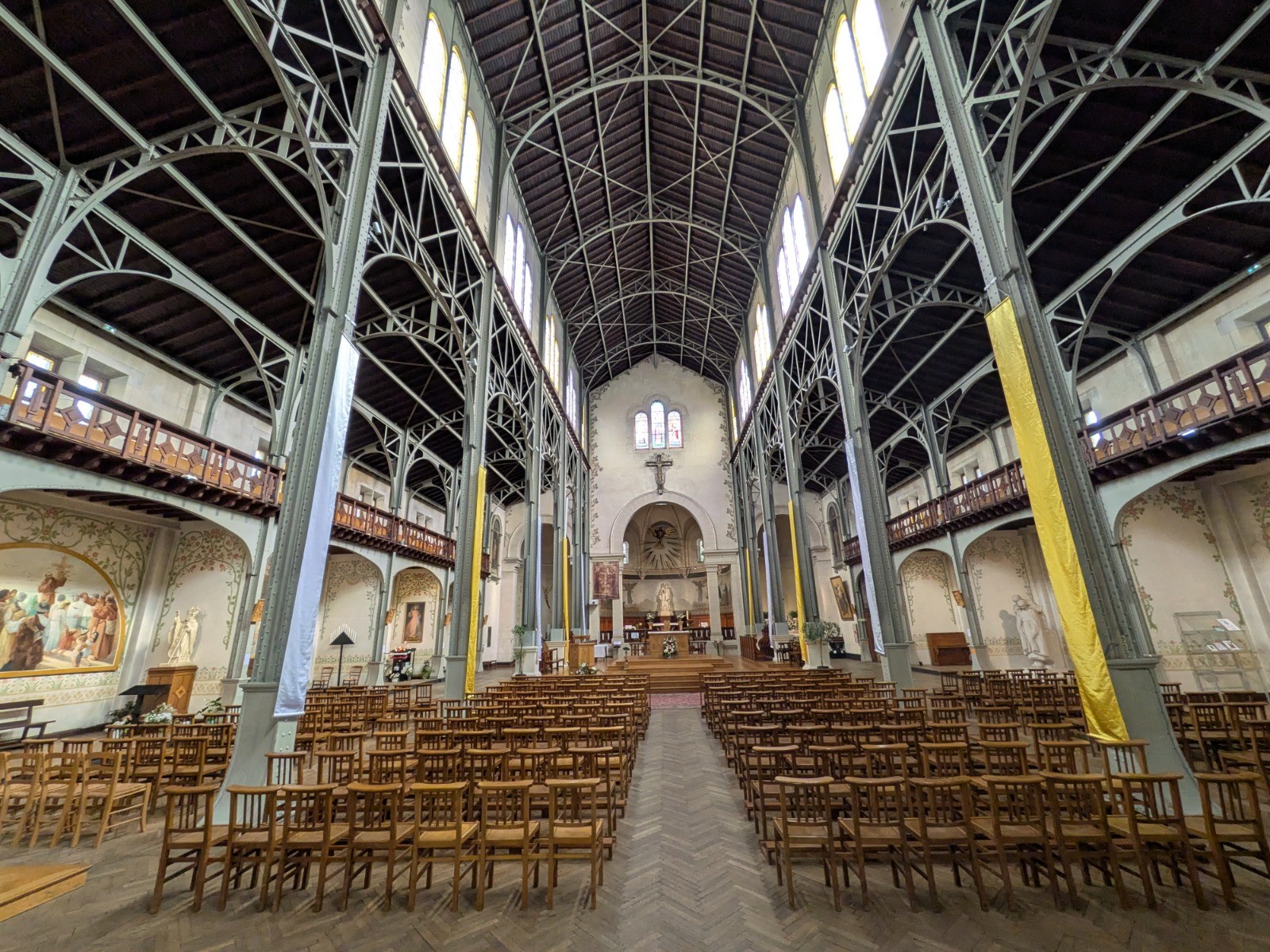 Église du début du XXe siècle construite pour les ouvriers de l’exposition universelle, célèbre pour sa structure métallique apparente.