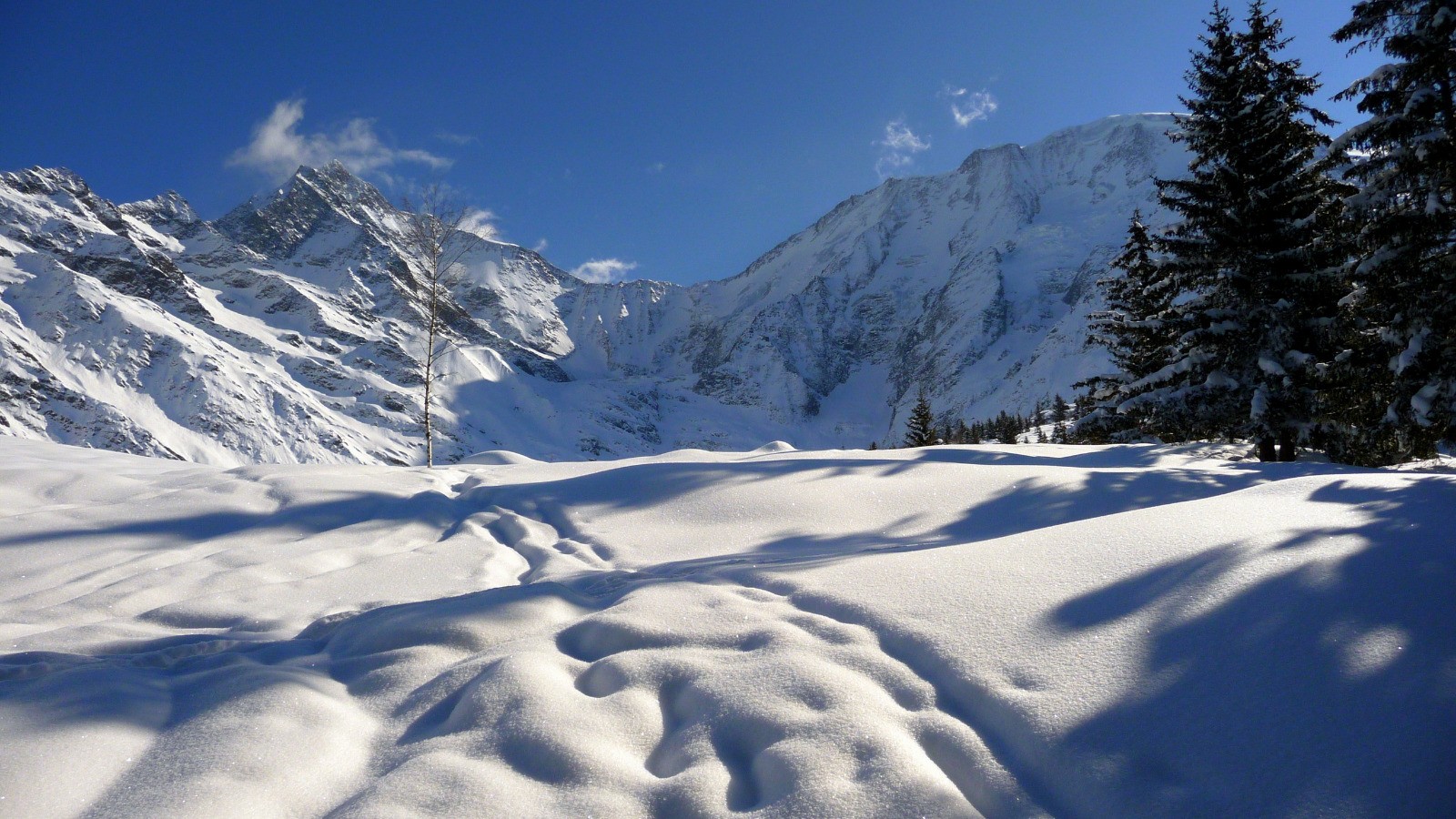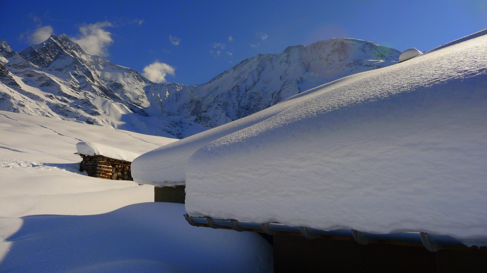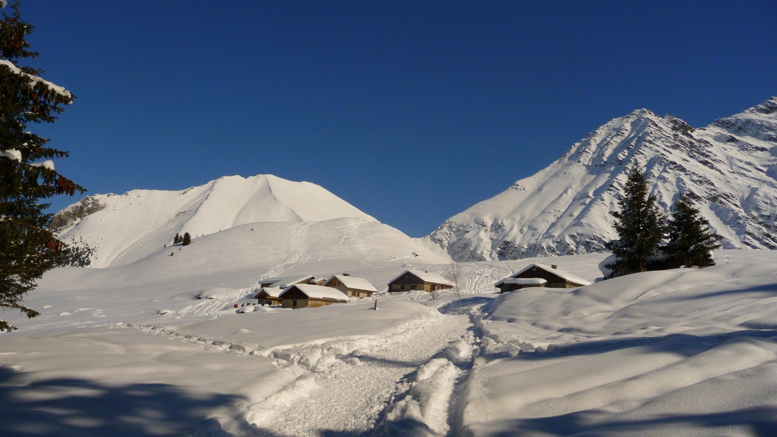 chalets de Miage. Repeauter sur 800m. Lorsque le sentier s'oriente vers le sud, profiter d'une trouée Nord Ouest jusqu'à une clarière puis plein ouest .