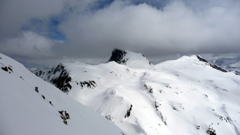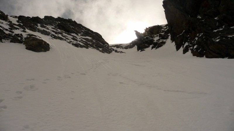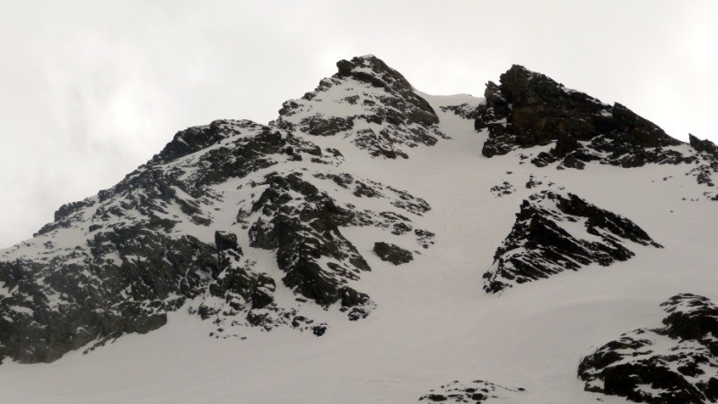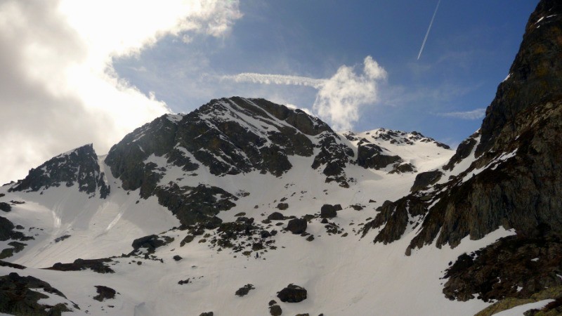 A 2550m, tirer plein E par une traversée légèrement montante pour rejoindre le pied du triangle W du Pic du