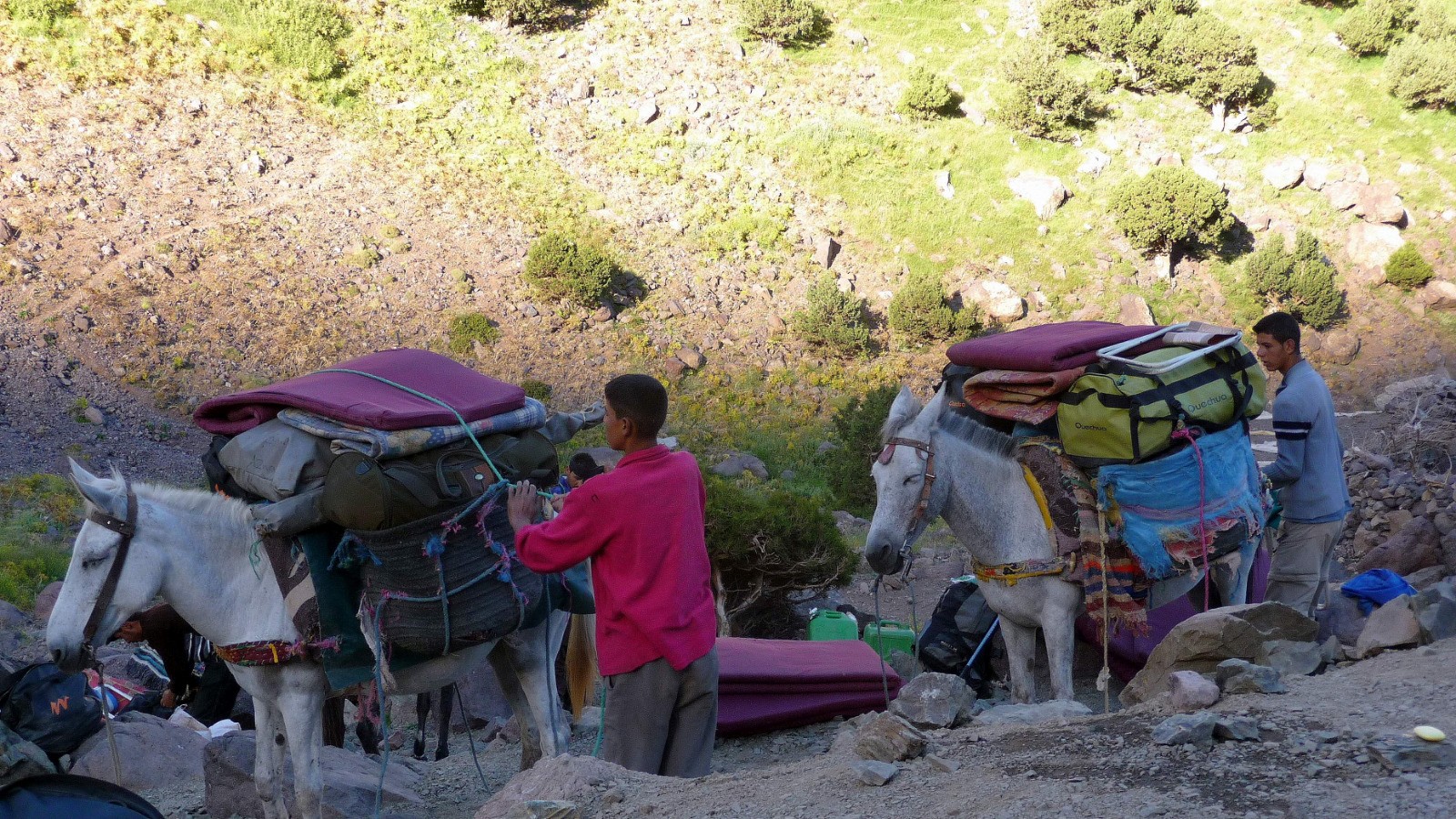 J 2 : transfert à Imlil (1700 m), montée et nuit au pied du Refuge Nelter 3207m. Photos -->: