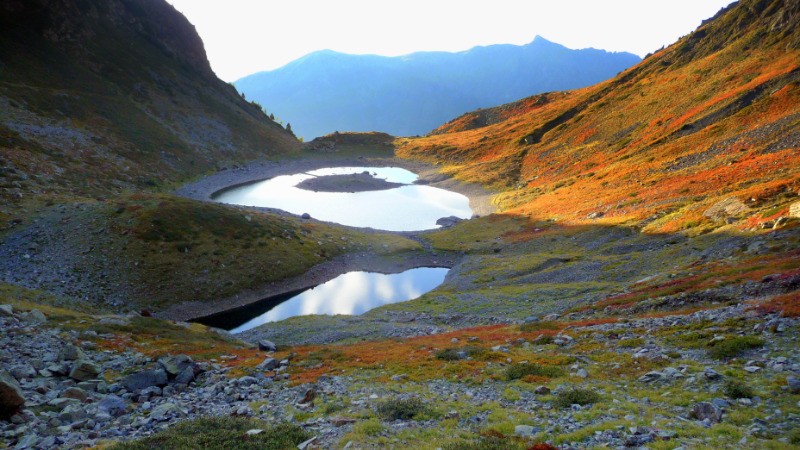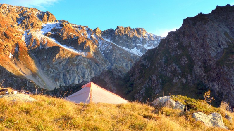 Chateau des Lacs par le Nord par une belle sente. Bivouac au col juste avant les 2 Lacs.