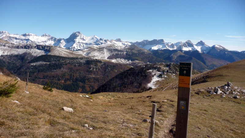 col de la Croix Haute depuis Grenoble, prendre à droite se garer dans la première épingle. Suivre le panneau qui indique