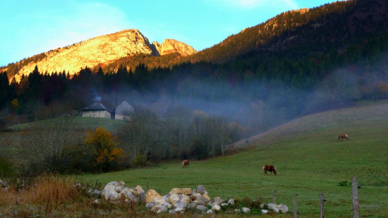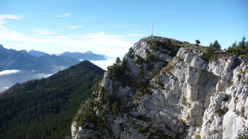 Col du Mollard (1320m). De là suivre le balisage jaune jusqu'au sommet (pommatoire si brouillard et neige). Du sommet rejoindre le sentier qui vient du
