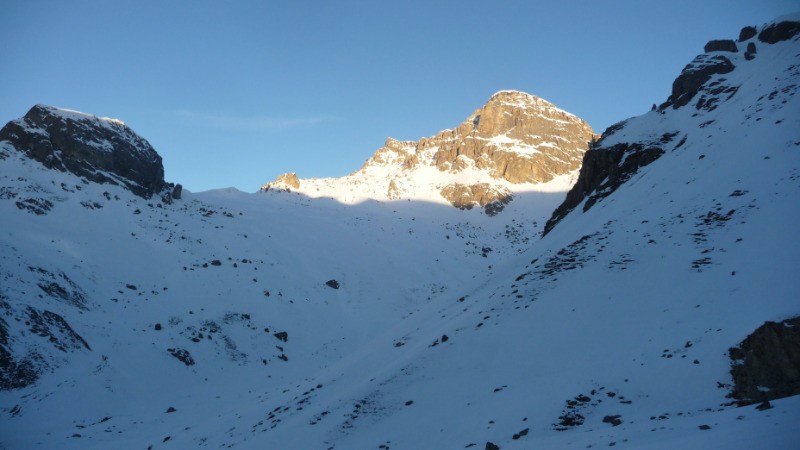 Au dessus, la pente se raidit pour attendre la sortie vers 3040. On peut facilement atteindre le sommet à 3069.