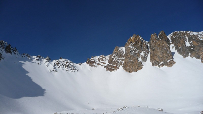 col du Chardonnet moyennant une petite remontée de 150m. Descendre les belles pentes Ouest sous le col pour rejoindre l?itinéraire de montée.