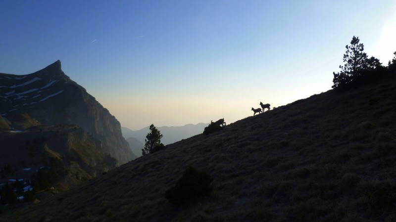 cabane des Aiguillettes . En soirée, rencontre avec les jeunes Bouquetins face Ouest du