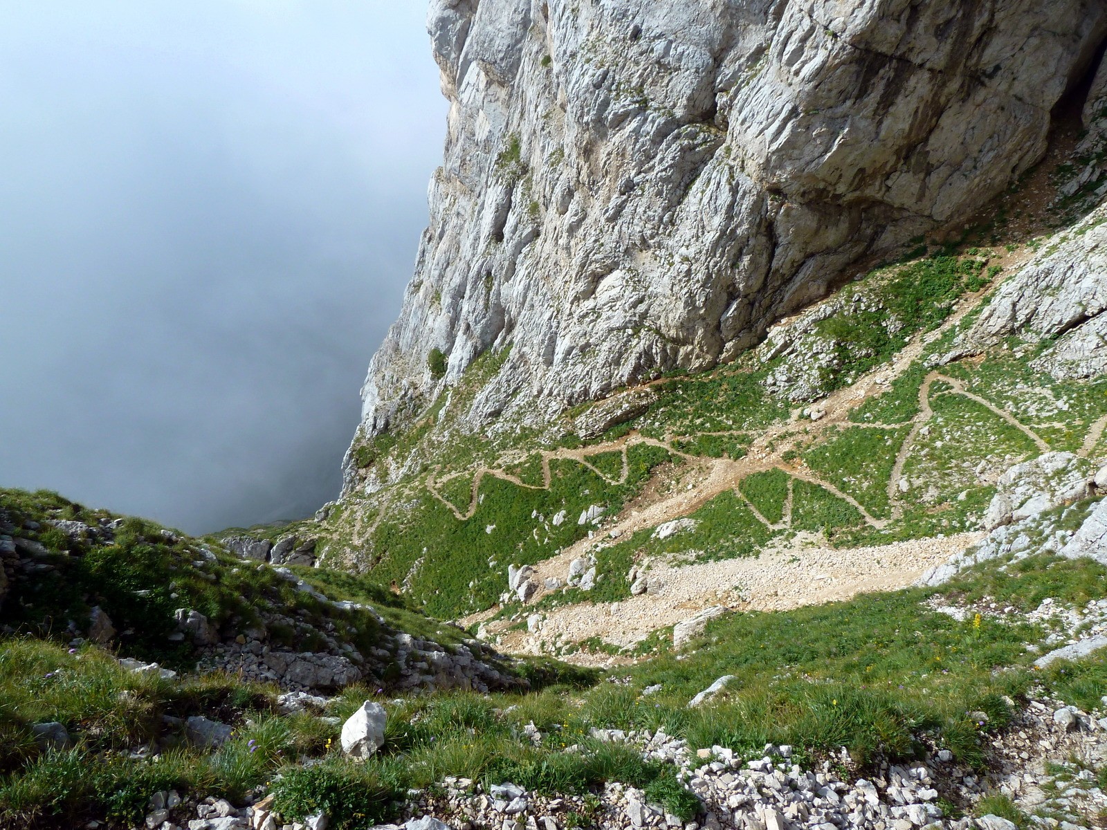 Baraque des clos". Laisser le chemin du pas à droite. Après qq lacets, on arrive sur une vire Nord-Sud puis un panneau indiquant "