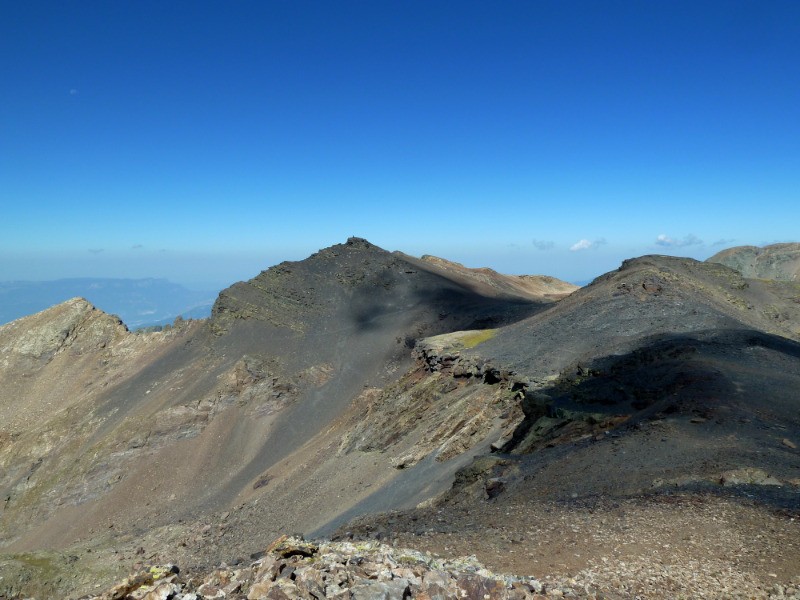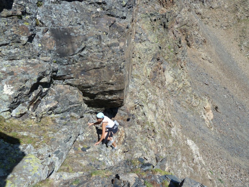 pt IGN 2419; contourner le moignon rocheux par la droite. On arrive alors dans un pierrier qu'il faut suivre plein Ouest. Suivre ensuite les sentes de bestiaux qui débouchent entre "