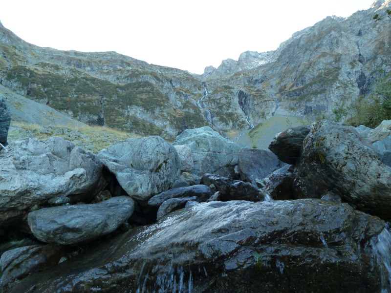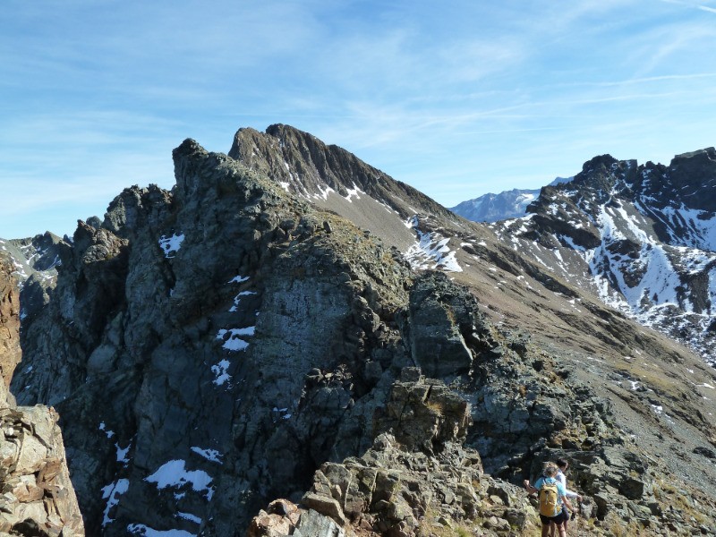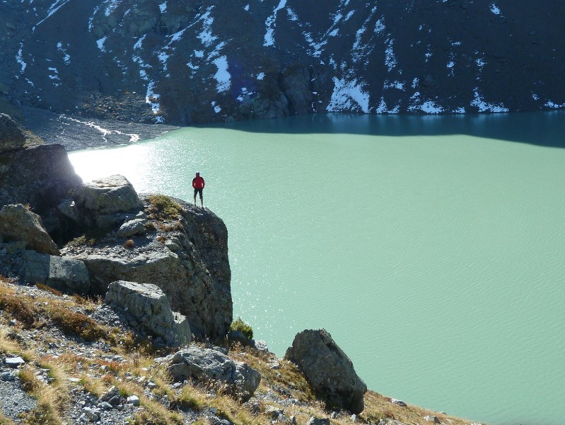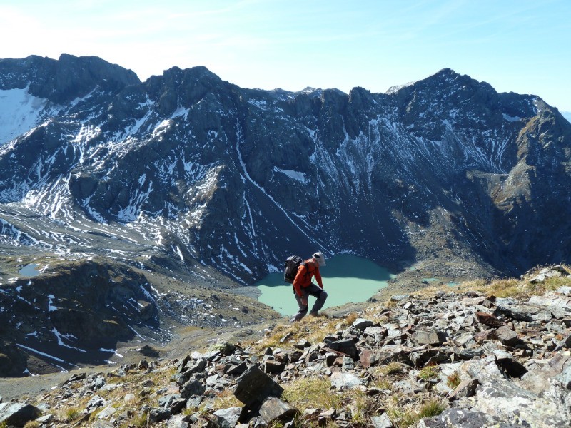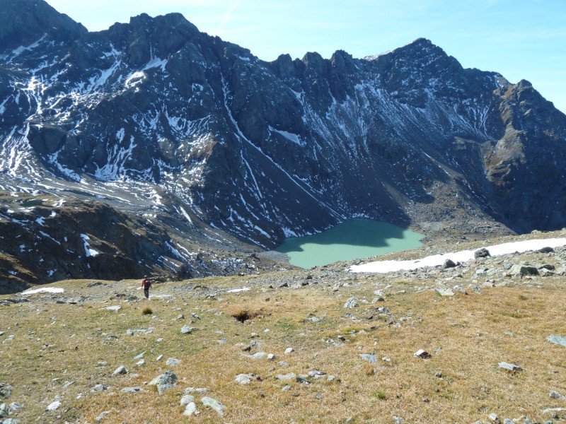 Lac Blanc . Du Lac, poursuivre plein Nord. Suivre une direction NE (traces ) dans un terrain raide et glissant (hors sentier). Descente par le même itinéraire .