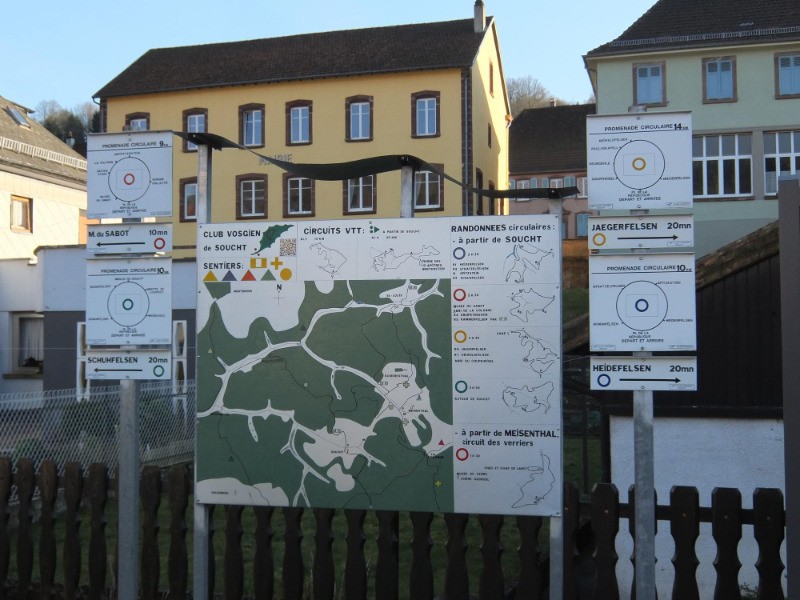 La randonnée démarre à Soucht ou à La Colonne ; elle se déroule surtout en forêt et passe par le musée du sabot, la stèle aux officiers, La Colonne, les Trois Pierre. Vue panoramique sur Soucht.