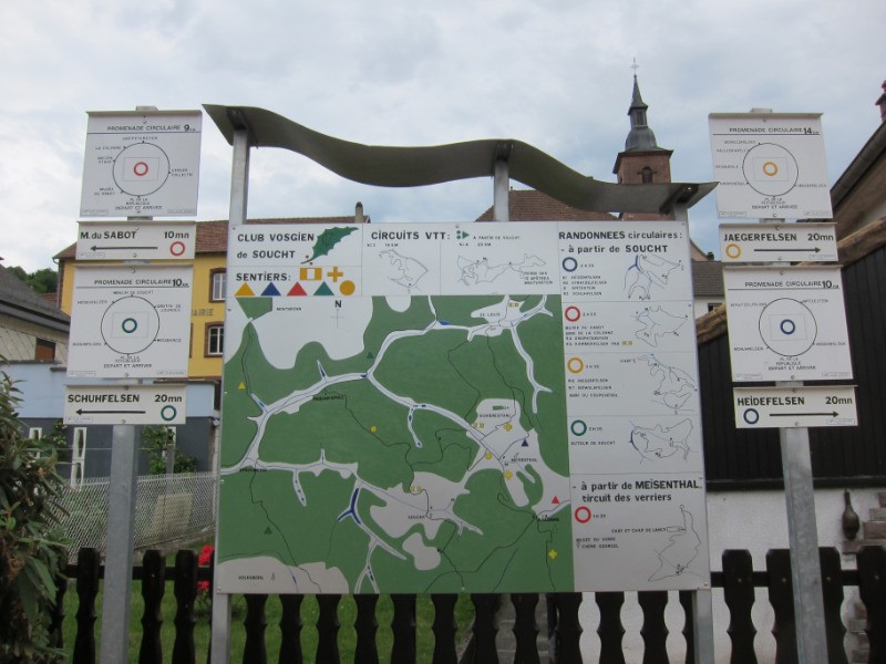 Petit circuit VTT qui à la sortie de Soucht descend la vallée de Meisenthal (karting et Pauluskapell) puis grimpe sur les hauteurs de Soucht( vue panoramique) et revient au village par le Moulin de Soucht et le stade.