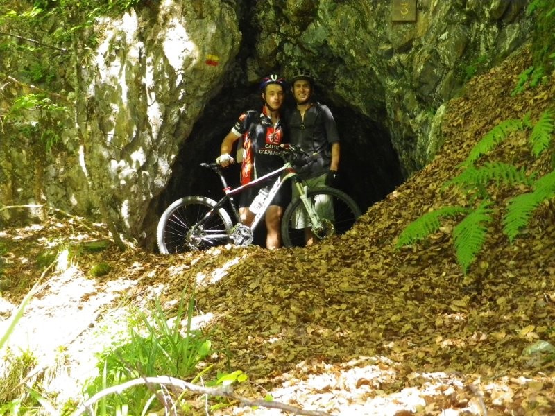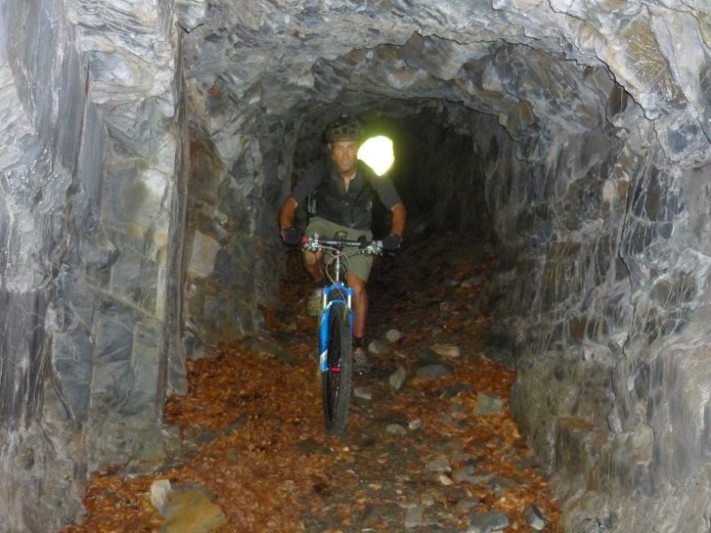 6 tunnels (éclairage nécessaire) sont encore présents sur la trace, vous pourrez aussi voir quelques wagonnets ou des traverses, ainsi qu'en bout de ligne la grosse roue du funiculaire qui amenait le minerai dans la vallée.