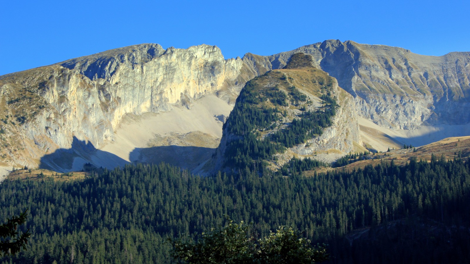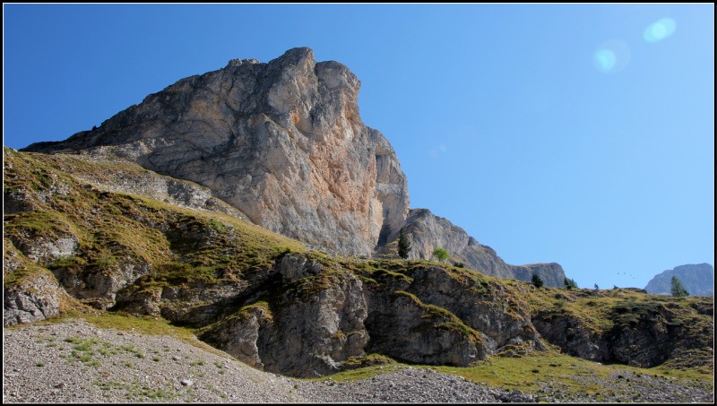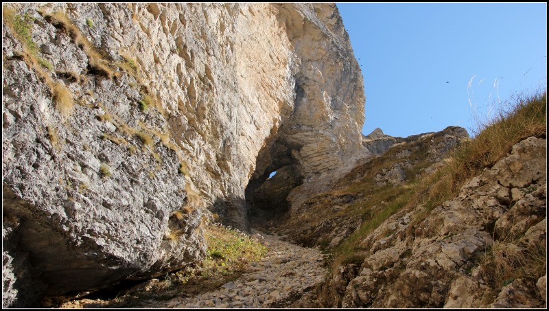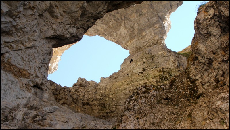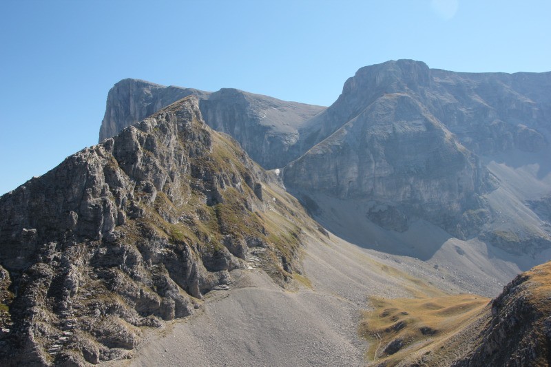 a brêche de la Corne. S'assurer qu'il n'y pas personne au dessus! , Ca se raidit vers la sortie avec possibilité de s'assurer (3 splits) côté gauche en sortant. R4