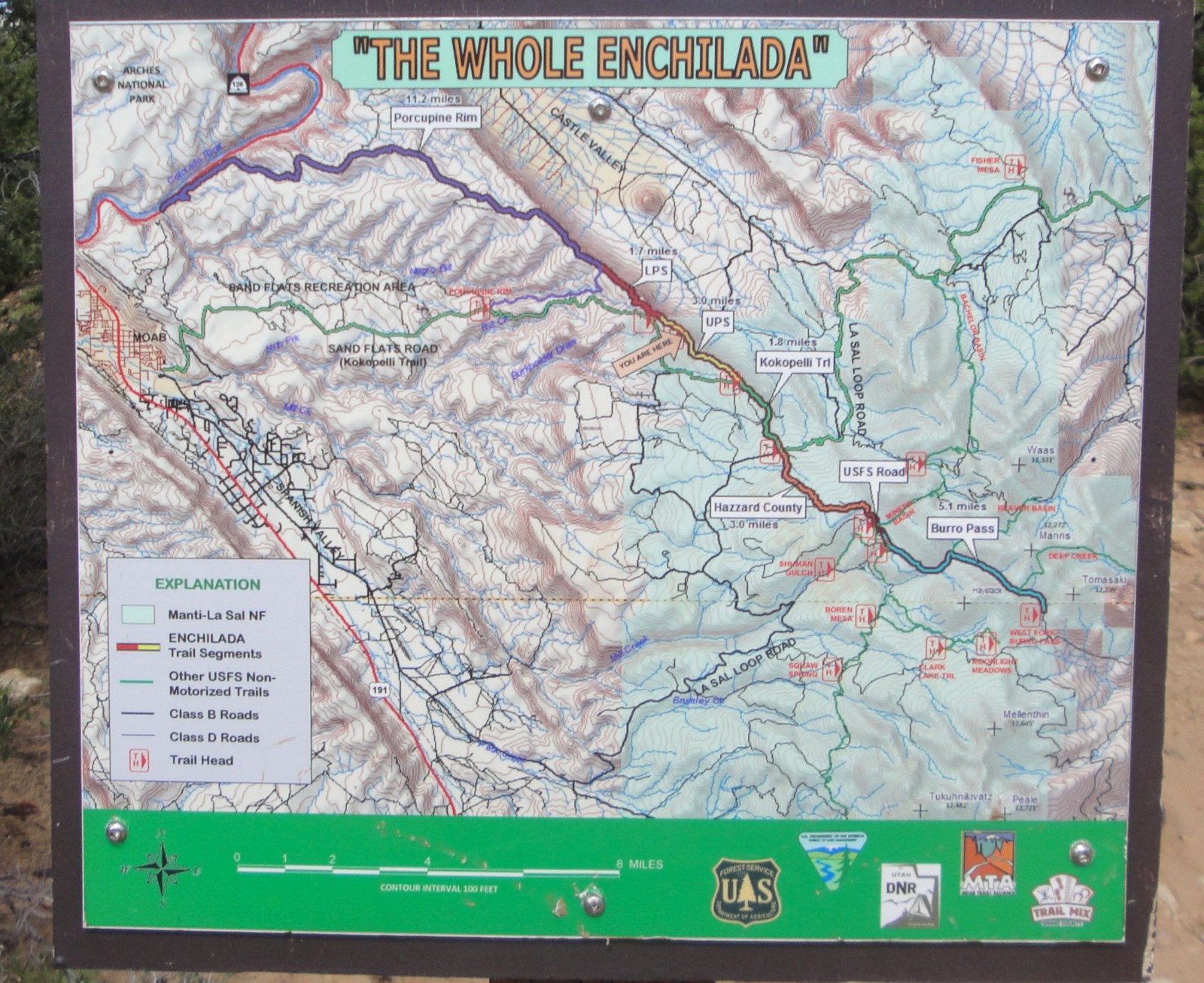 Un zeste de piste et nous voilà sur le secteur de Kokopelli / UPS / LPS, un long sentier qui suit la ligne de crête avec son cortège de virolos agrémenté de belles marches, relances, et de l'expo, le tout avec des vues exceptionnelles sur la Castle Valley, Jubilatoire le truc !