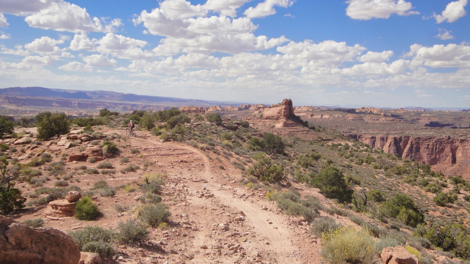 Porcupine Rim se présente, on quitte le bord de crête pour gagner l'intérieur des terres, le sentier devient plus cassant avec de bonnes marches, ça secoue pas mal, ensuite le single devient plus exposé et technique, la vue sur le Colorado est magnifique comme la fin avec de bons challenges.