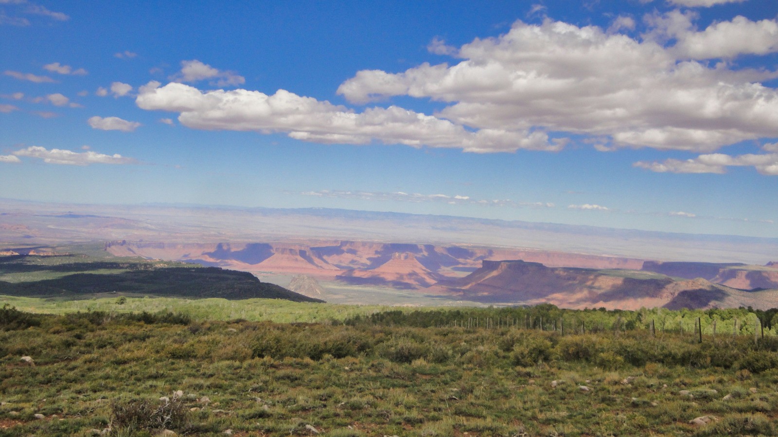Petite pause à Warner Lake, on enchaîne sur Hazard County avec sa végétation basse et son cortège de virolos très rapide parfois, grosse banane pour cette première partie et déjà se profile La Castle Valley.
