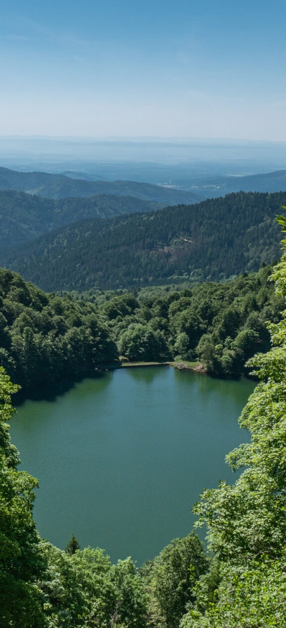 Le lac des Perches, un petit bijou des Vosges. L’accès se fait uniquement à pied, l’environnement est donc particulièrement tranquille avec ses forêts profondes tout autour !