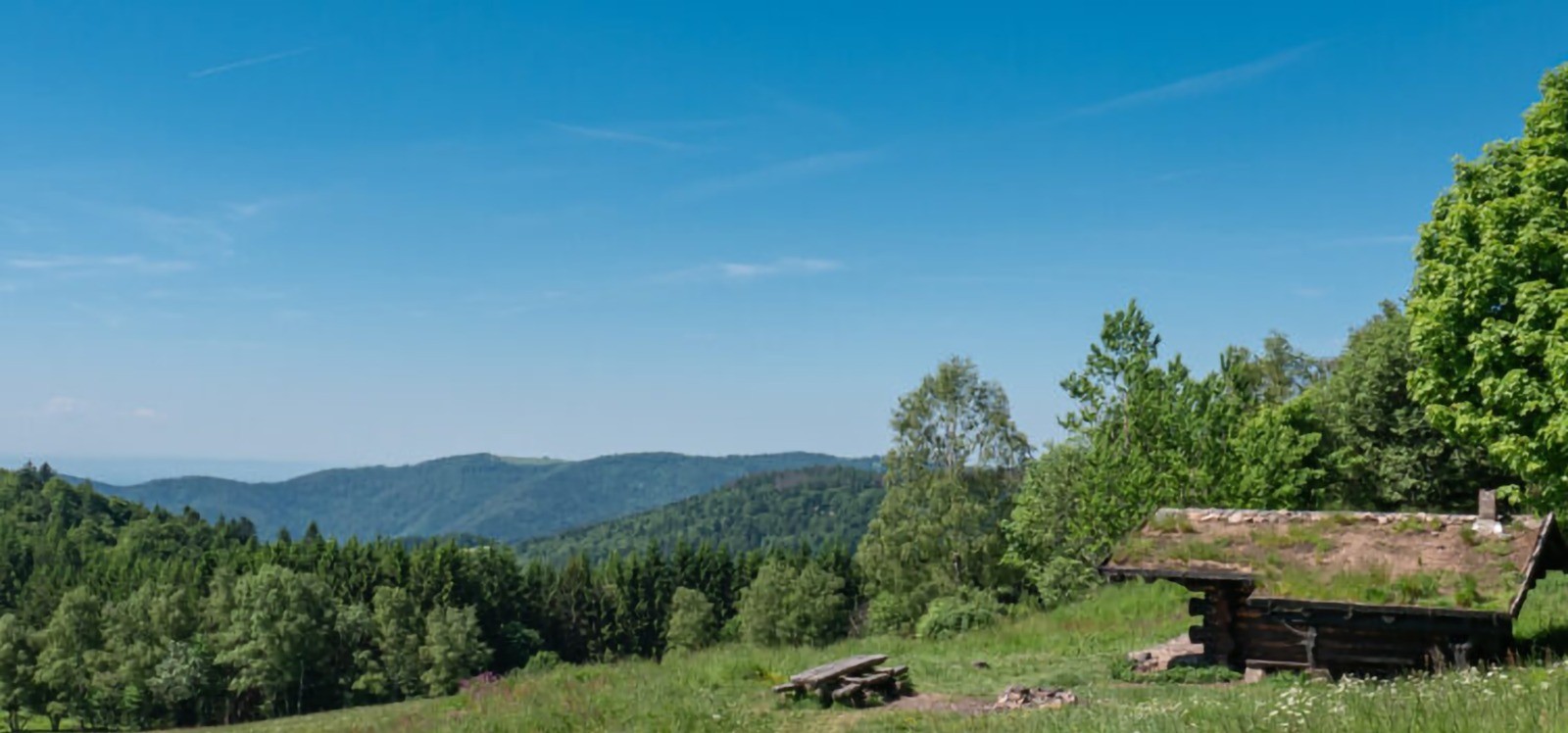 Une nuit dans une cabane en rondins de bois, j’ai nommé la cabane de la Haute Bers, une institution dans la vallée de la Thur. Elle surplombe un grand pré et offre un panorama époustouflant sur la Forêt Noire !