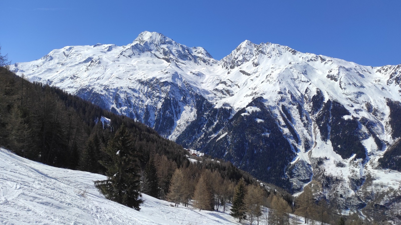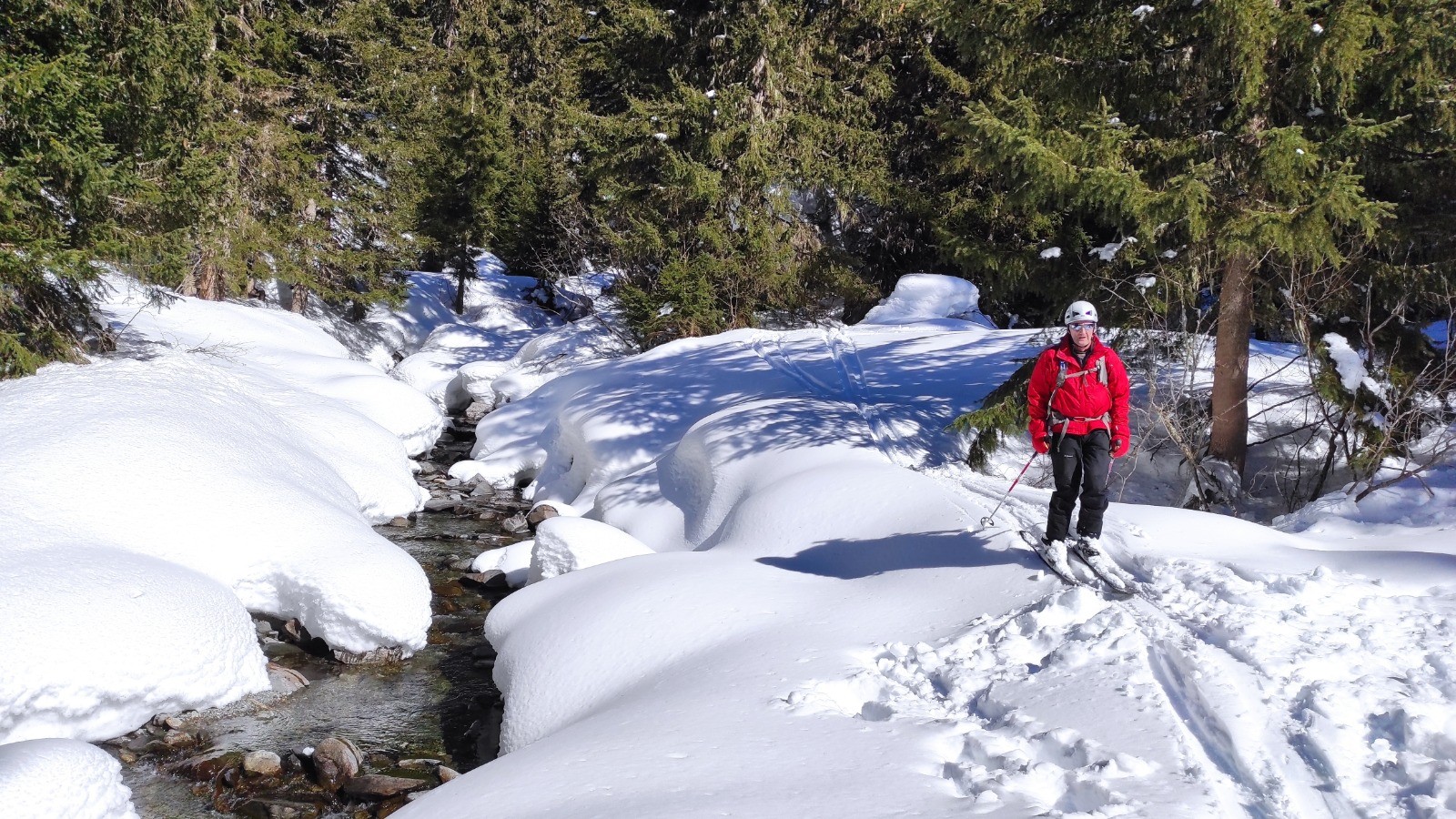Départ de la station de sainte Foy retour au beau village de la Masure en face du Miroir. Une poudreuse excellente en nord, belle ligne dans la forêt.