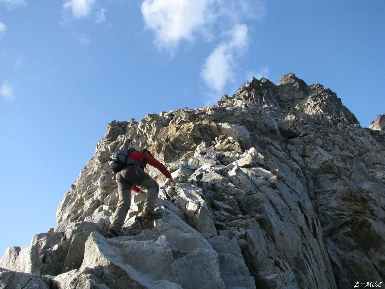 Continuer sur la crête frontière plus facilement, traverser le Pic Royo et le Tuc du Col Supérieur de Literole avant d’atteindre le Col Supérieur de Literole. Du col continuer toujours sur la crête, après être monté de quelques mètres, obliquer sur la droite, passer sur une dalle un peu déversante, puis franchir un ressaut assez raide mais facile, le reste jusqu’au sommet du Pic Perdiguère ne présente plus de difficulté. Du pic on peut poursuivre sur la crête frontière, vers l’ouest, pour aller jusqu’au Pic Perdiguère ouest 3176 m, non nommé sur la carte IGN et aussi appelé Tuca del Molsero.