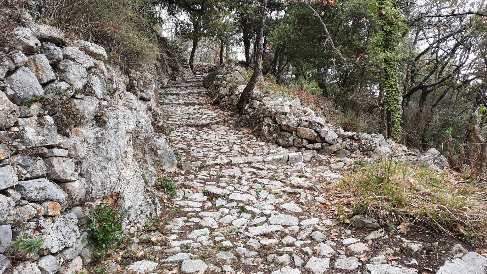 Début de parcours sur une belle calade qui mène à la chapelle de Beauvoir.