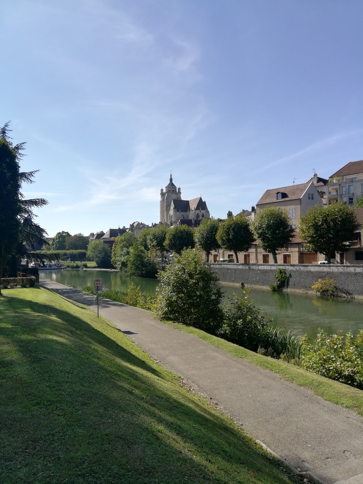 Les quais aménagés invitent à la promenade à pied ou à vélo, entre maisons anciennes, jardins et reflets des façades dans la rivière.