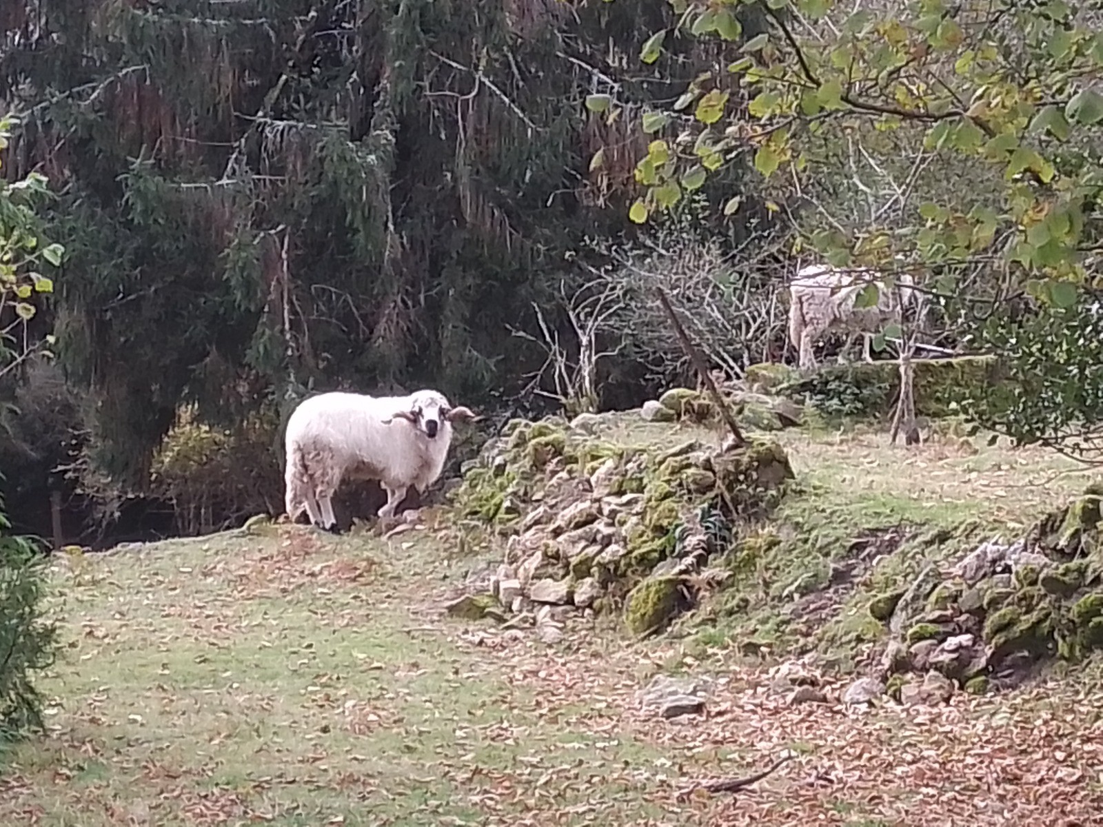 De jolis bois et chemins et les béliers avec leurs petits au village de La roche.