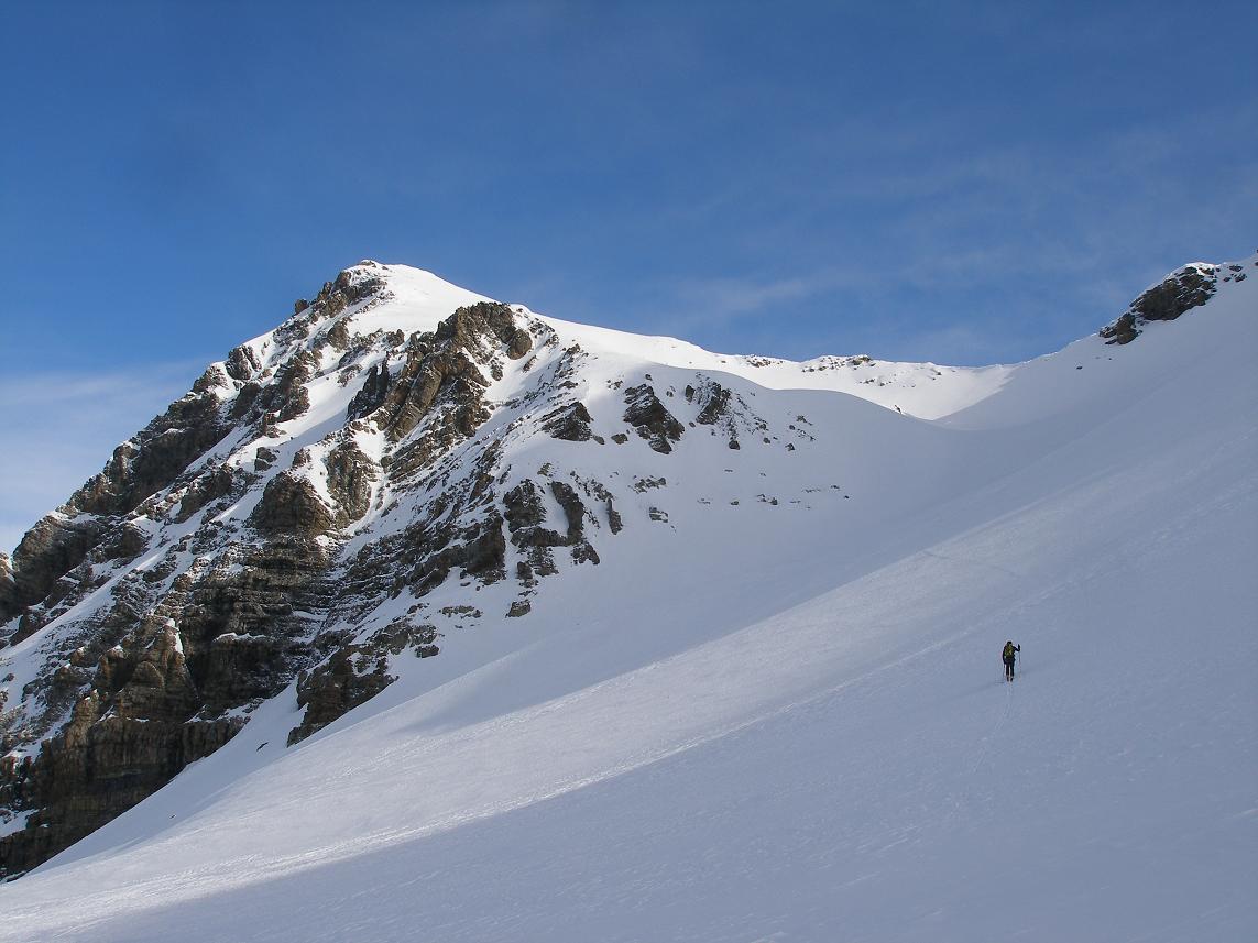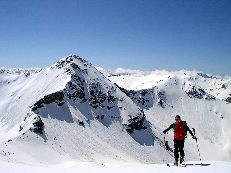 majestueuse arrivée au sommet, ski aux pieds, suffit à expliquer son engouement pour les randonneurs à ski aguerris et sûrs de leur technique par le Vallon de Chabrière depuis Prapic, n'hésitant pas à négocier leur trace