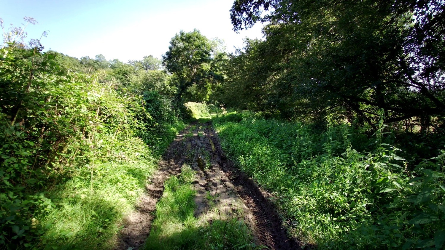 Le relevé indique 7 km de chemin bien roulable, 4,5 km où les hautes herbes pourraient vous ralentir plus ou moins selon la saison, 0,8 km difficile (boue, étroit, branches) et 10 km de route.