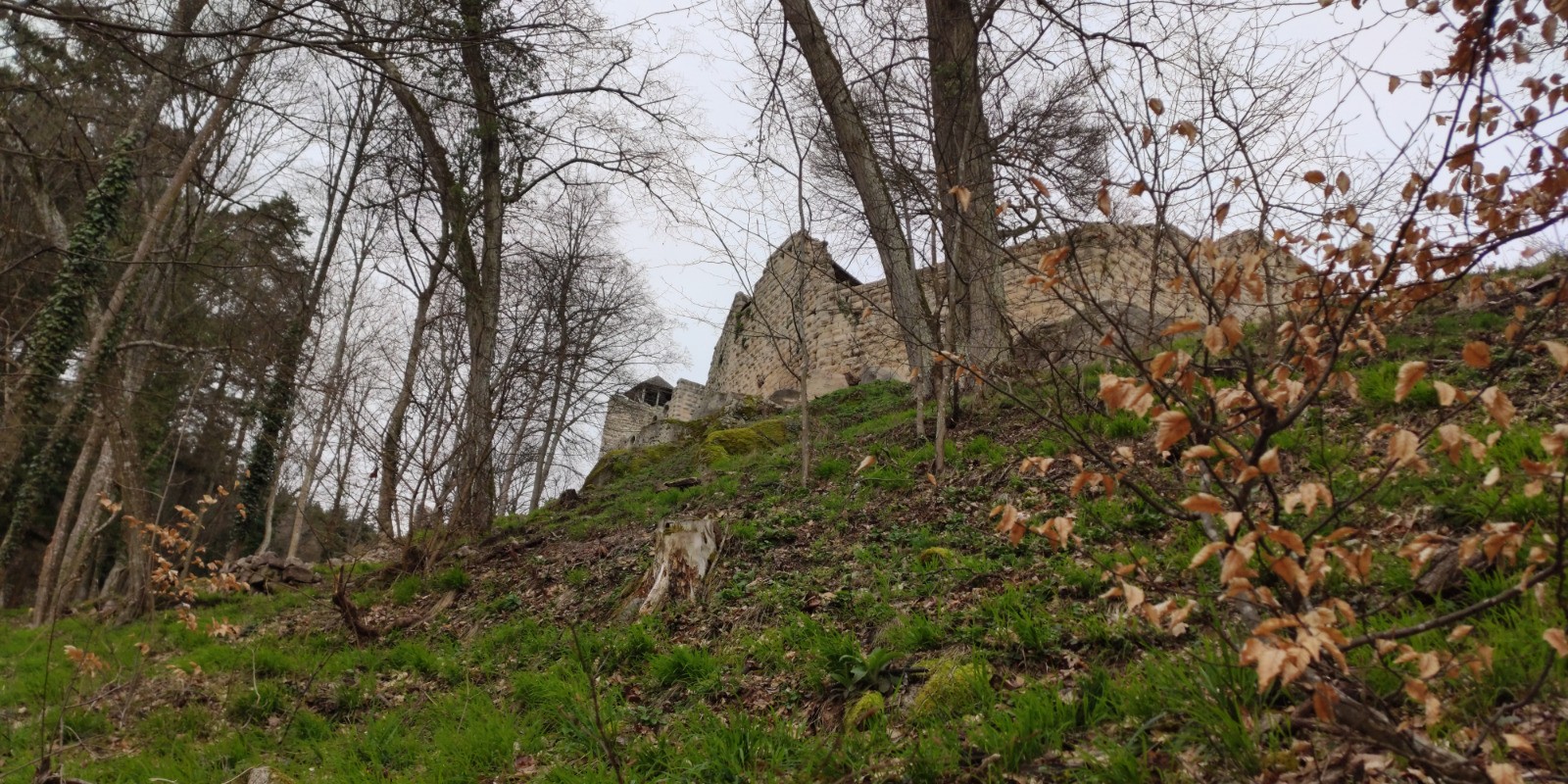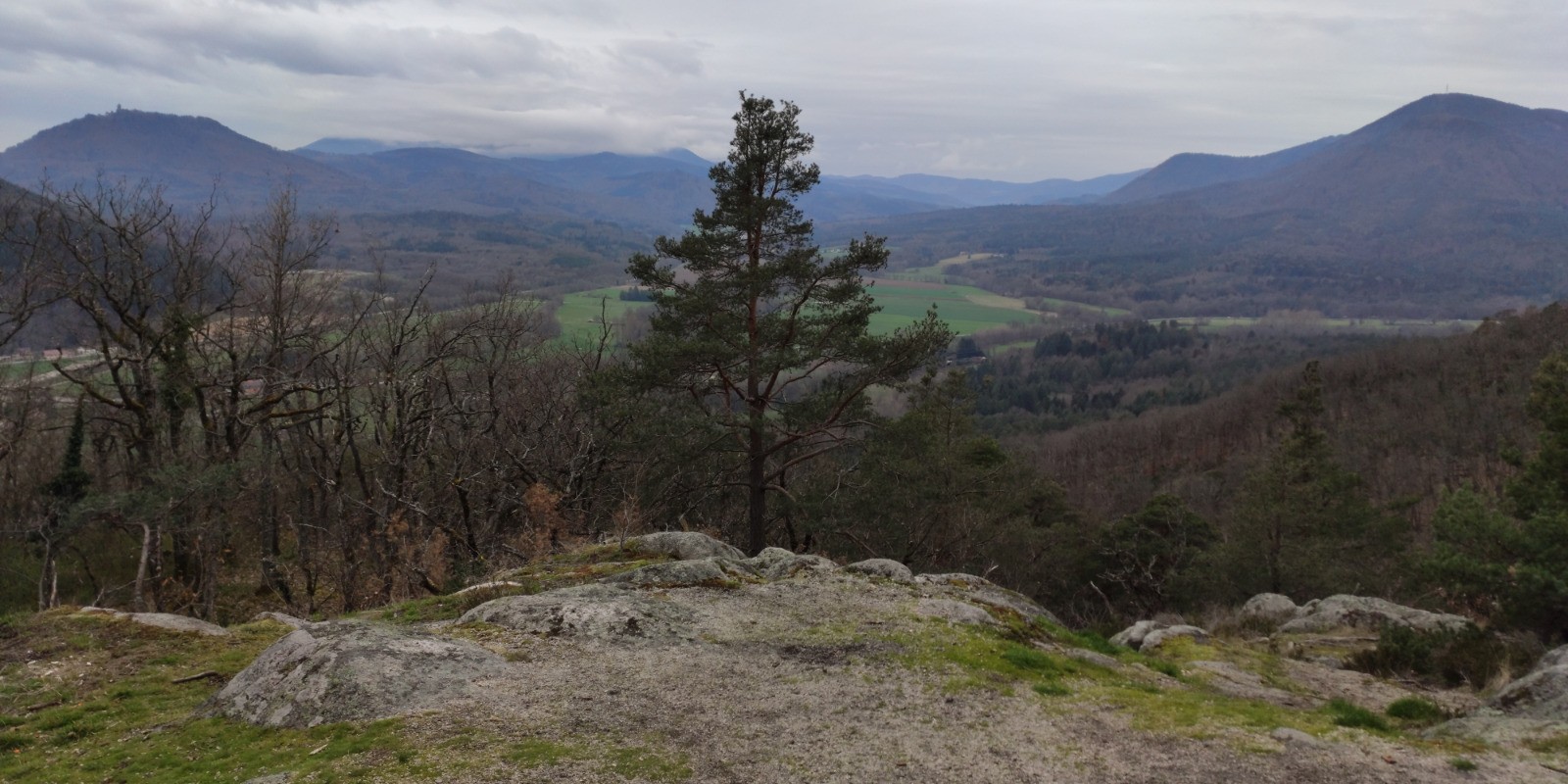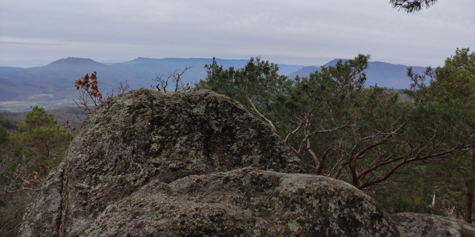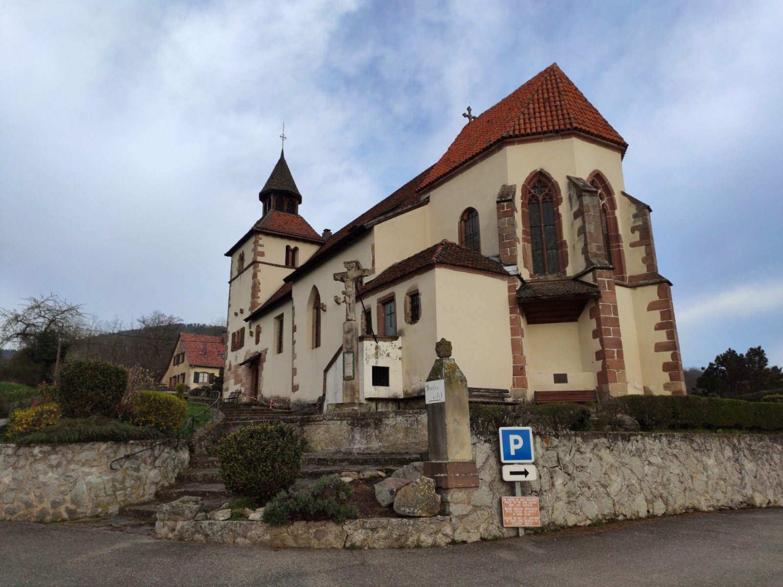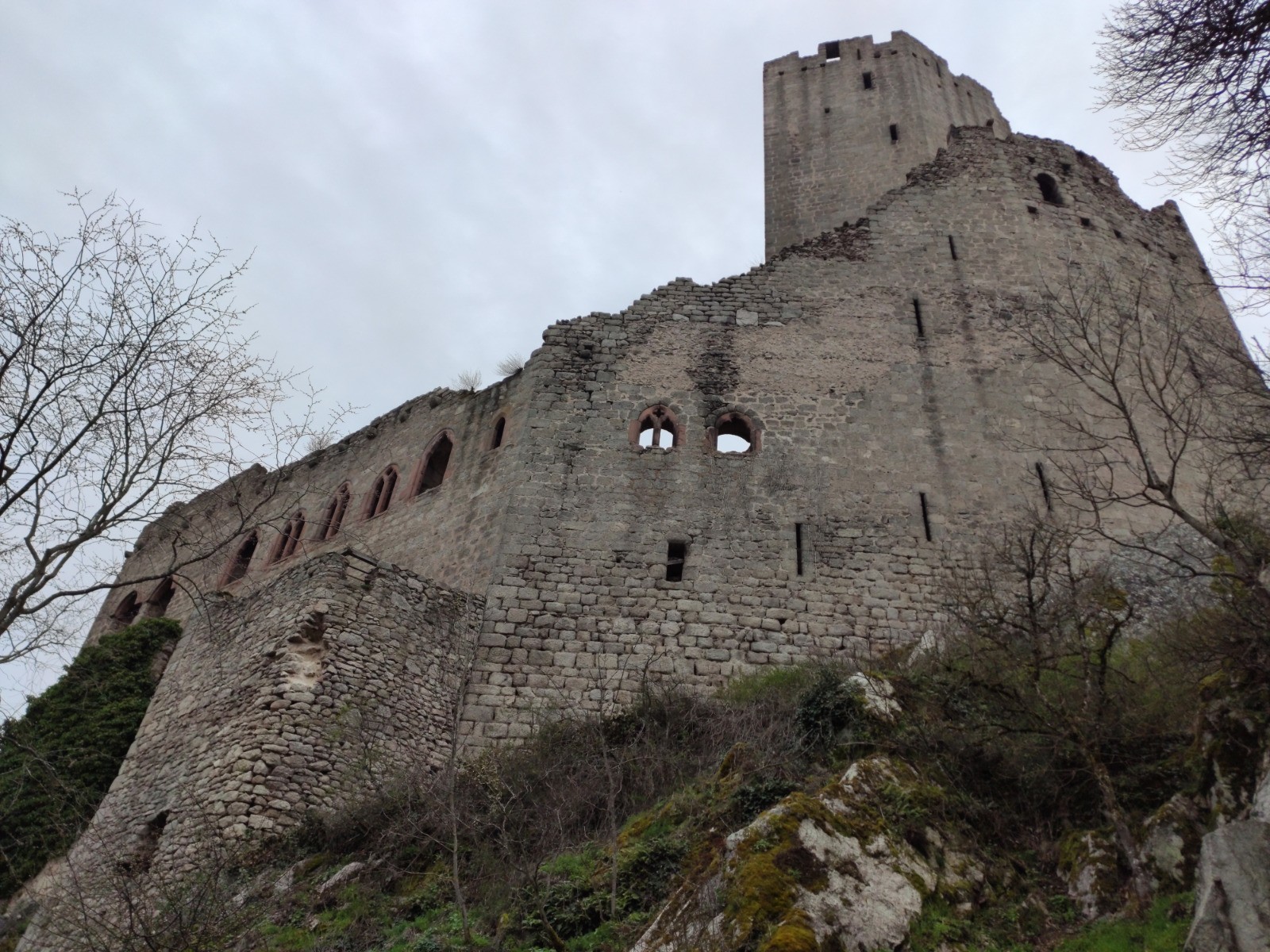Chapelle Saint Sébastien (Dambach-la-Ville) - château du Bernstein - rocher Bellevue - rocher du Falkenstein - source de la Chapelle Sainte-Marie - Stangenplatz - [rocher point de vue au-dessus de La Vancelle à 16.75 km] - col du Frankenbourg - D697 - D424 - Route du Sel - château du Ramstein - château de l'Ortenbourg - Dieffenthal - sentien de Compostelle - Dambach-la-Ville - Chapelle Saint Sébastien