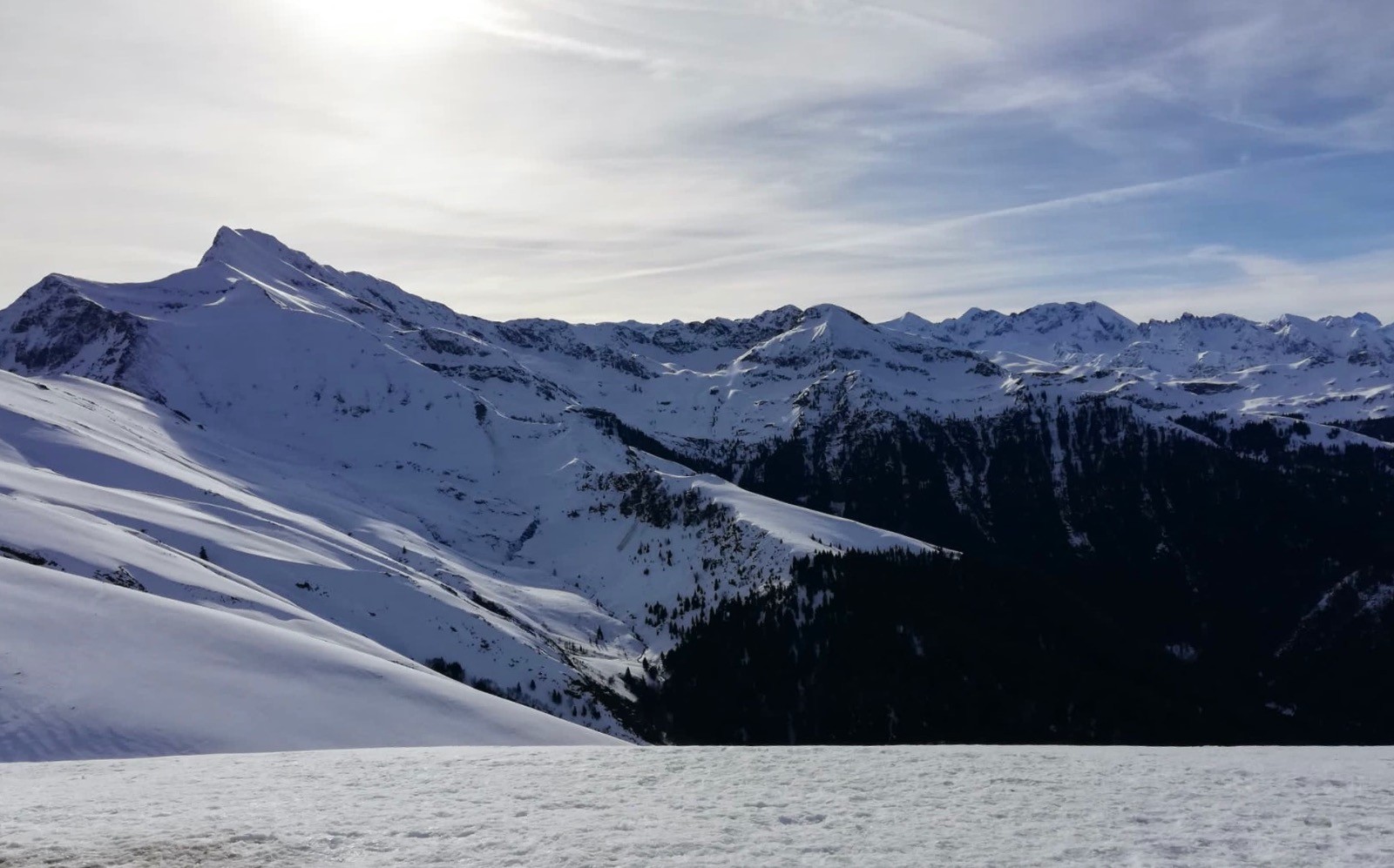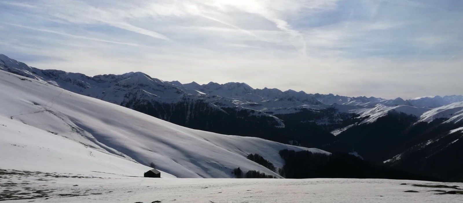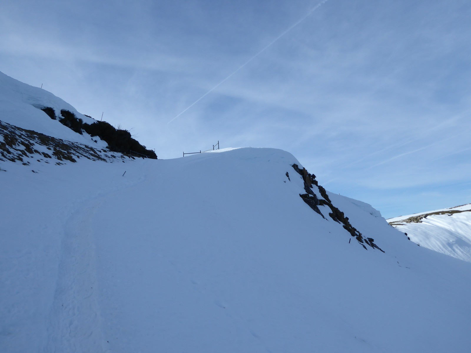 Météo très favorable pour monter au Cuq Crémail. Le spectacle sur les sommets environnants est superbe.Montaigu,Viscos,Soum Arrouy, Pic de Léviste, Soum de Léviste, Naouit , Vignemale,Ardiden, Soum de Siarrousse, Grande Fache, Grand Barbat, Monné, Balaïtous , Cabaliros. Les congères ont accumulé jusqu?à 1,50 de neige et pour certaines menacent de céder.