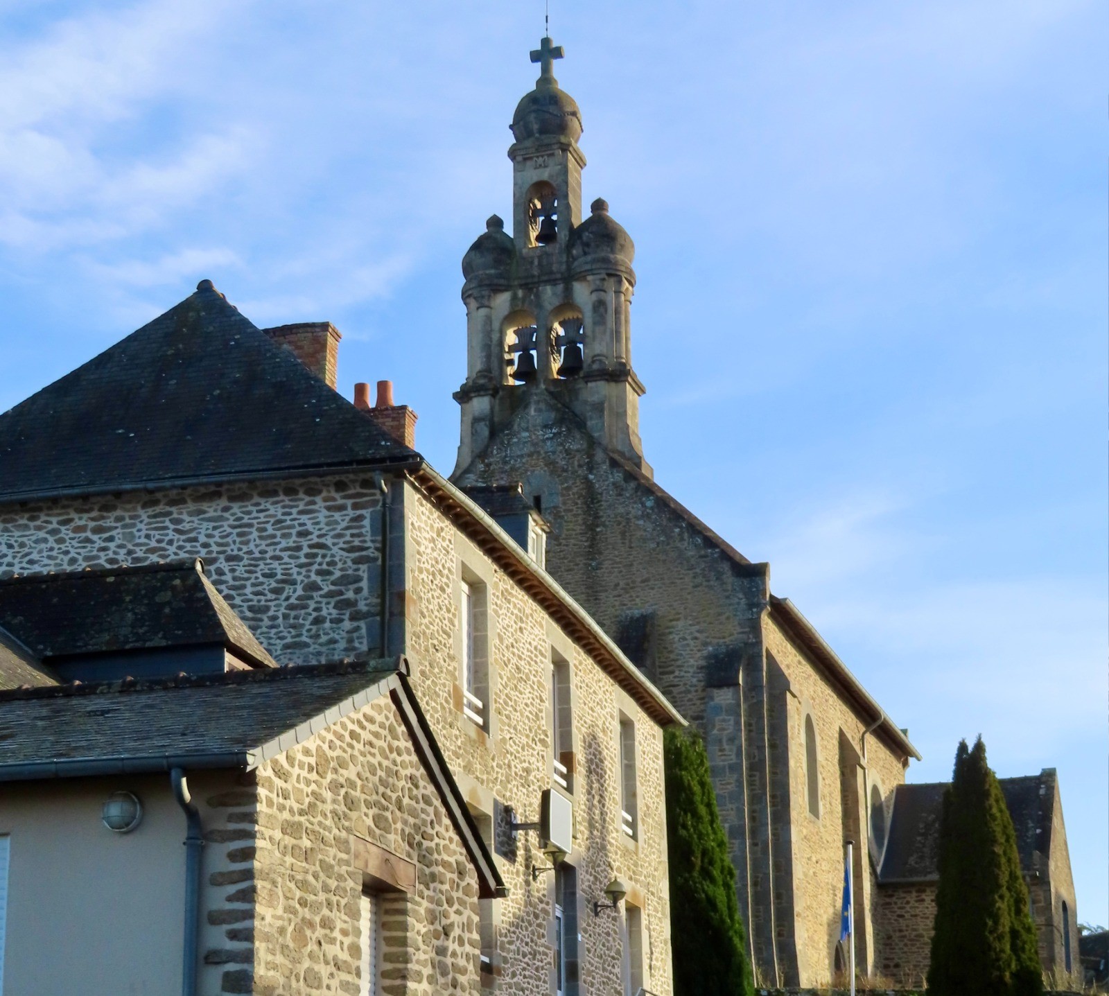 - l'église de Tressé et son surprenant clocher à bulbes néo-bysantin