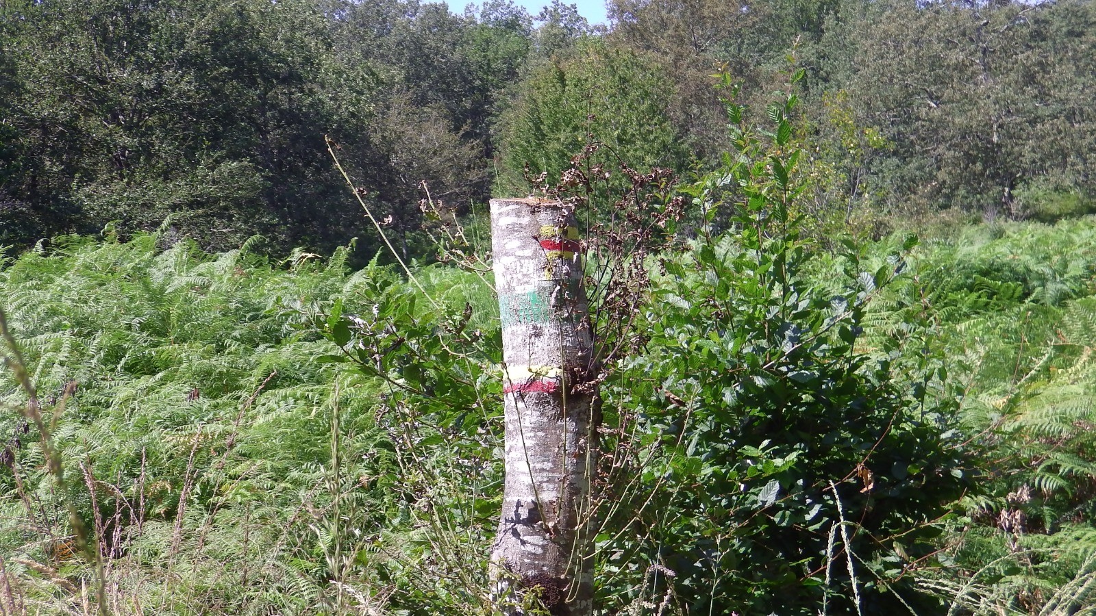 Le Gr pays suit un chemin cabossé qui traverse des bois riches en moucherons et s'arrête à une route où le GR 6 prends le relais jusqu'à Faux en passant sous le château d'eau et arrivant devant la mairie.