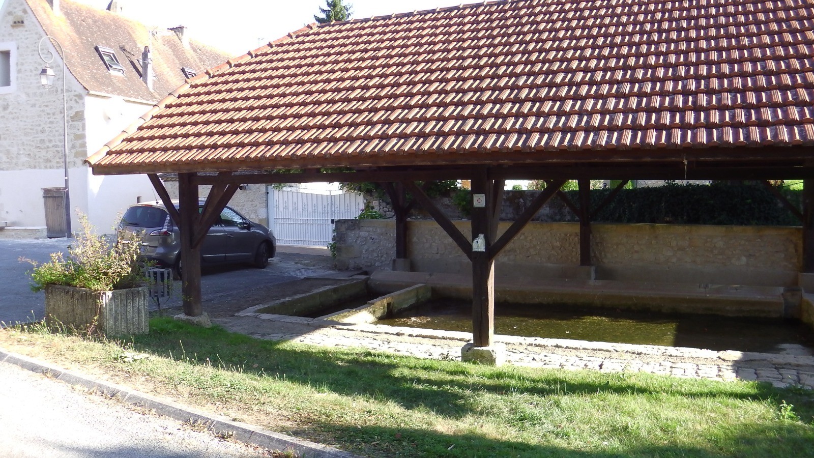 En partant passage le long de la bizarre église de Faux puis près du lavoir - monument historique et de la fontaine qui l'alimente.