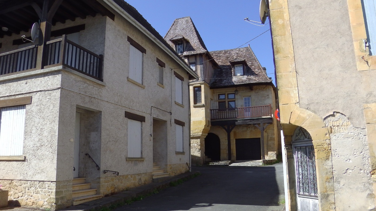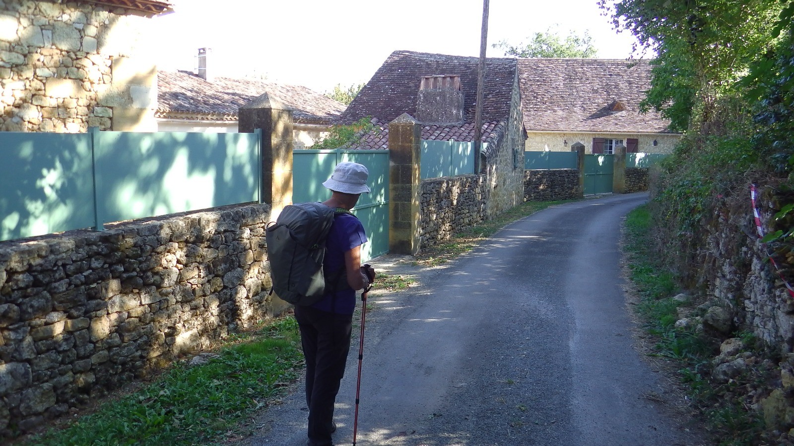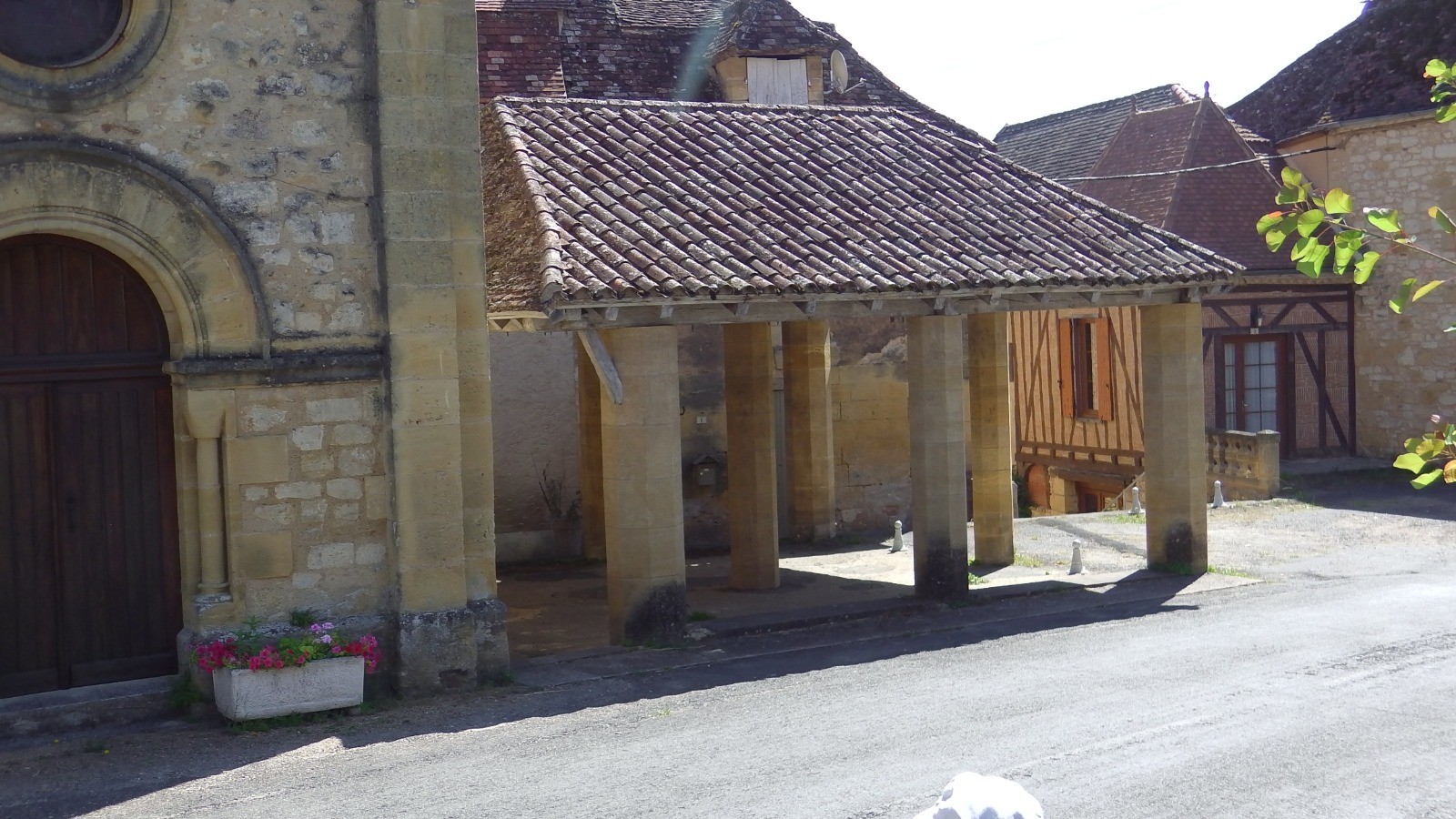 Reprendre la rando en visitant Lanquais, sa halle sa maison renaissance ... Devant les écoles monter vers le nord et suivre le GR pays (rouge et jaune) et ne pas tenir compte des balises jaunes qui correspondent à d'autre randos autour de Lanquais.