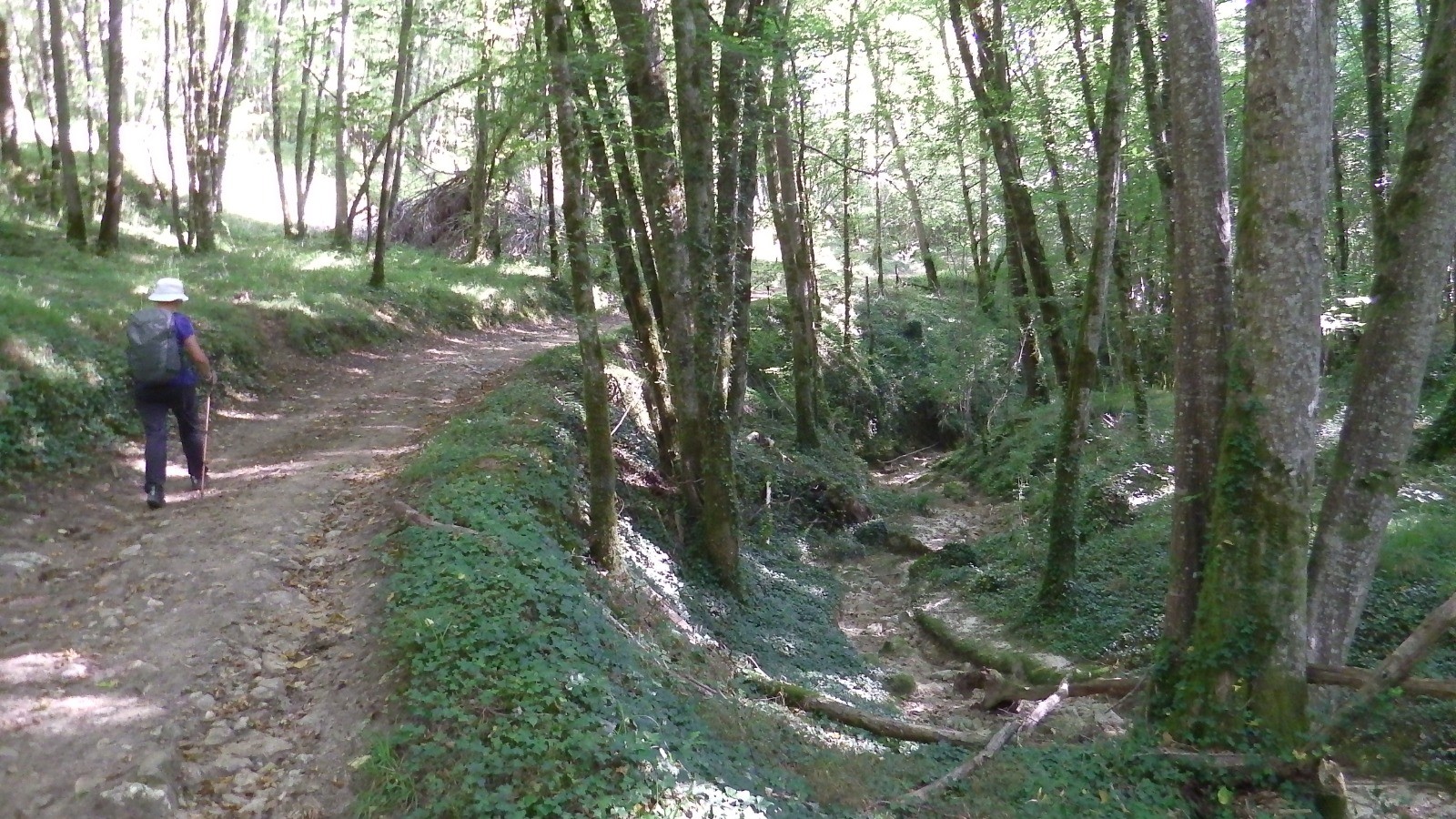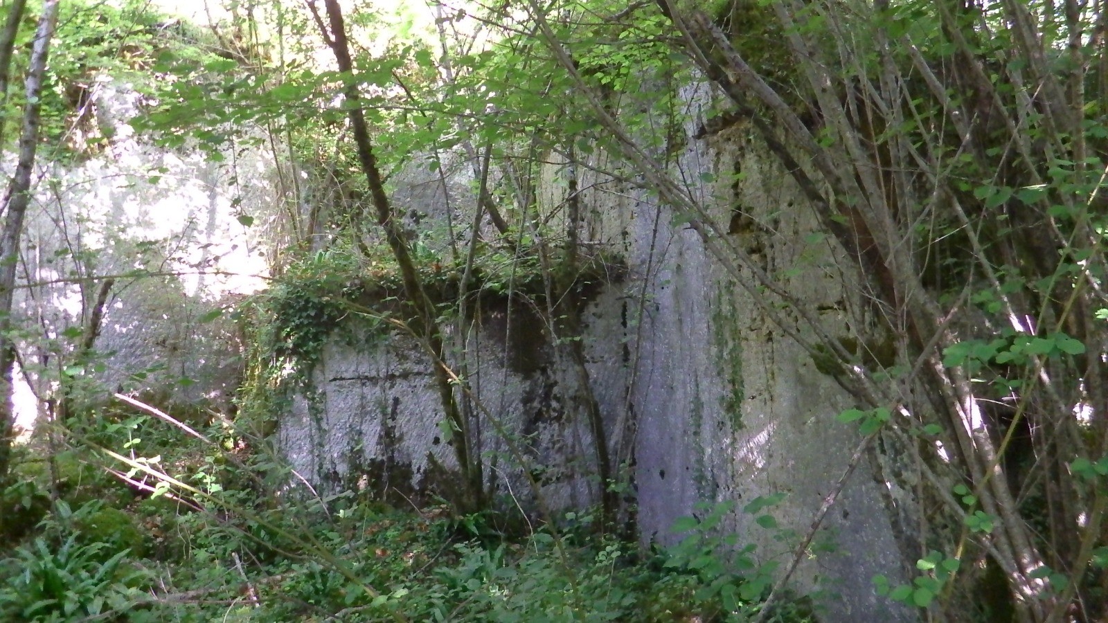 Après 4.5 km environ on rejoint le GR 6 qui suit Le Cauzeau. Le long de ce ruisseau bordé par des falaises, des carrières se succèdent, reconnaissables aux arêtes bien droites des bords de taille. Certaines sont souterraines.