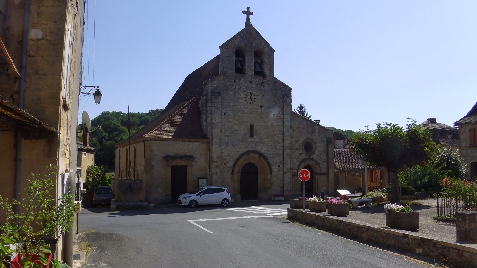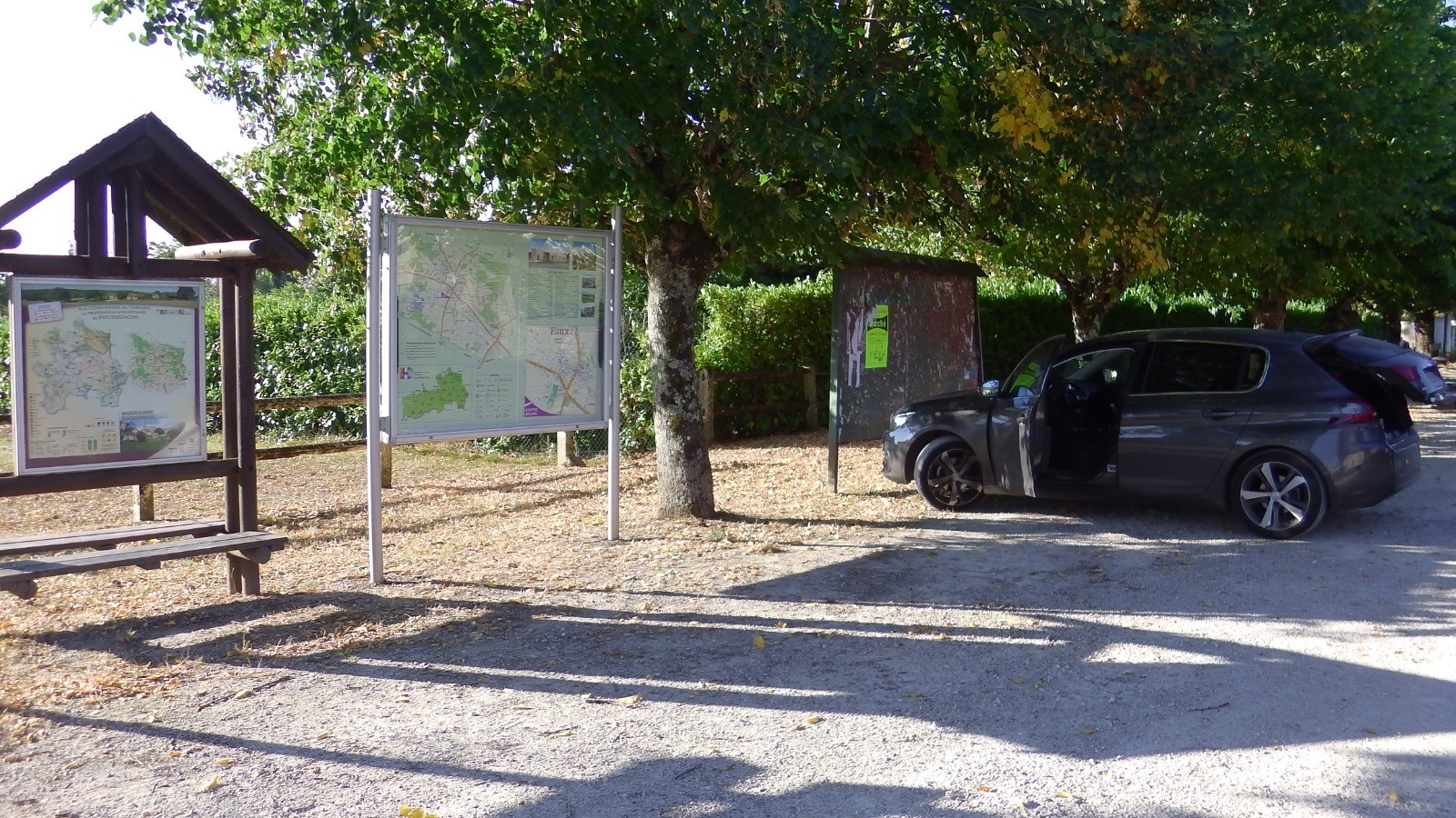 Il y a deux départ possibles : à Faux sur la place principale (mairie moderne dans l'angle) et à Lanquais, près du terrain de foot et du tennis.