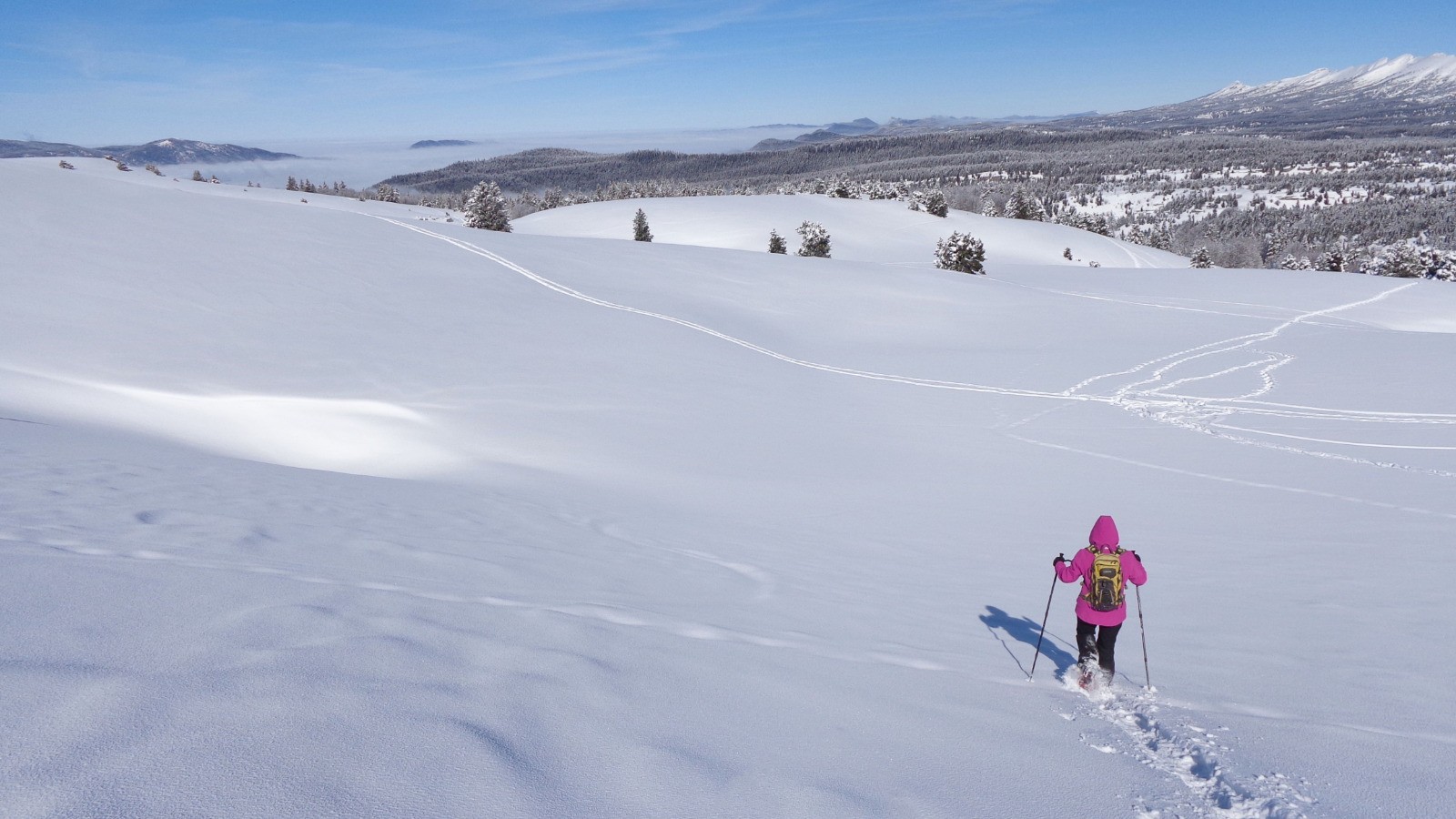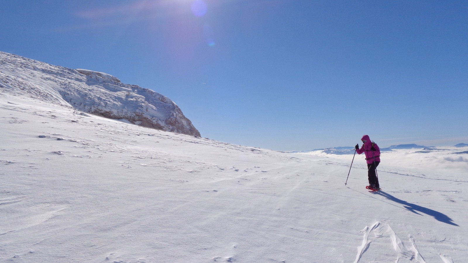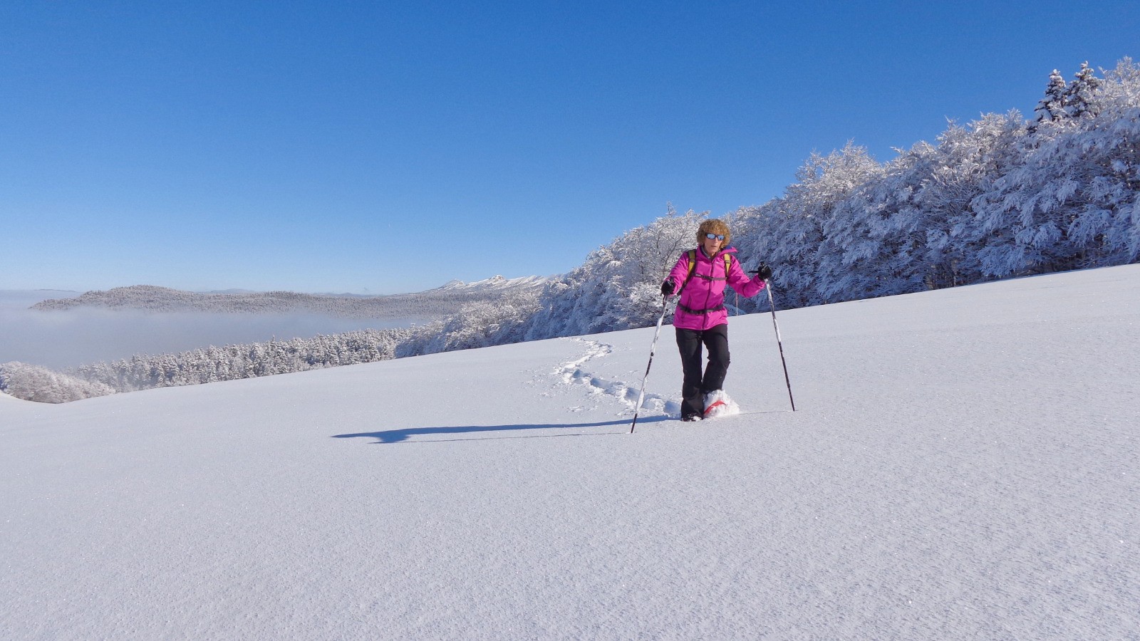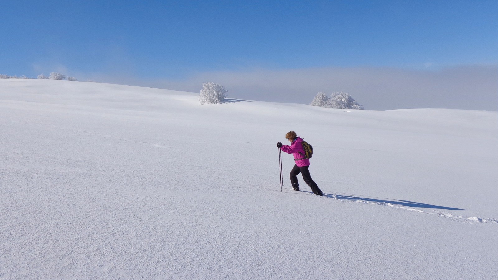 Départ du parking du plateau de Beure, pas le temps de mollir, on attaque dré dans le pentu pour atteindre le sommet, de la neige fraiche pour démarrer qui devient ensuite croutée sur le haut.