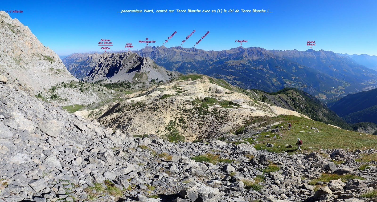 - que ce soit par le talweg de droite en montant ou depuis le Col de Terre Blanche, la très originale visite de Terre Blanche est fortement conseillée,