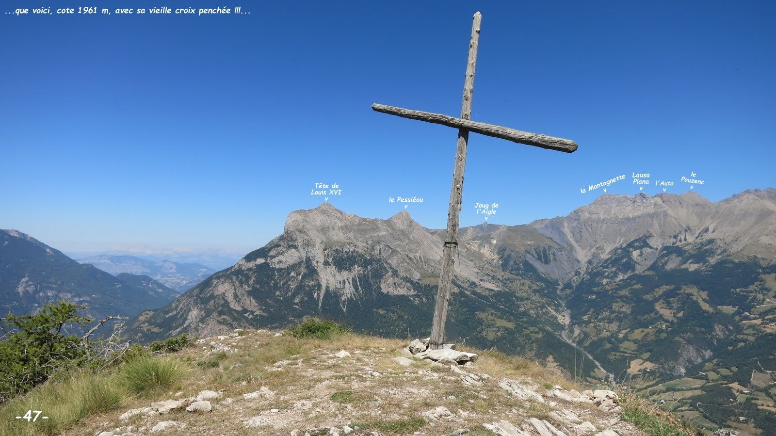 Bien que représenté par des pointillés rouges, certes nécessaires sur la Top25 de l'IGN, le franchissement de l'arête de Château Renard n'est pas très exposé ni impressionnant grâce à l'omniprésence d'une abondante végétation, seuls les quelques m de l'aller-retour jusqu'à la terrasse sommitale, ornée d'une très vieille croix, sont un peu plus techniques et exposés, mais sans réel danger pour qui veut s'en donner les moyens !